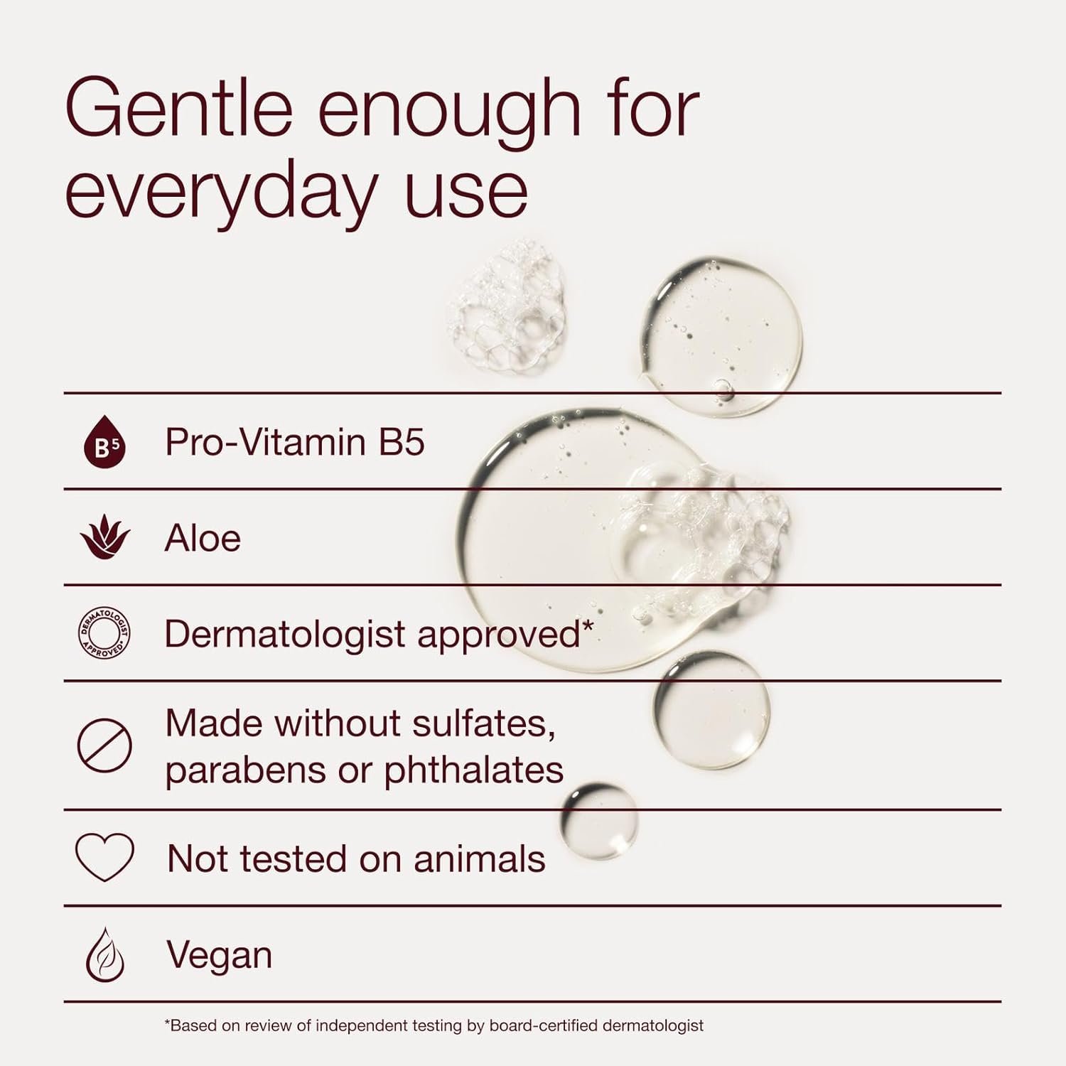 DERMATOLOGIST APPROVED: Based on review of independent testing by board-certified dermatologist. Made without sulfates, parabens, or phthalates. Not tested on animals and vegan.