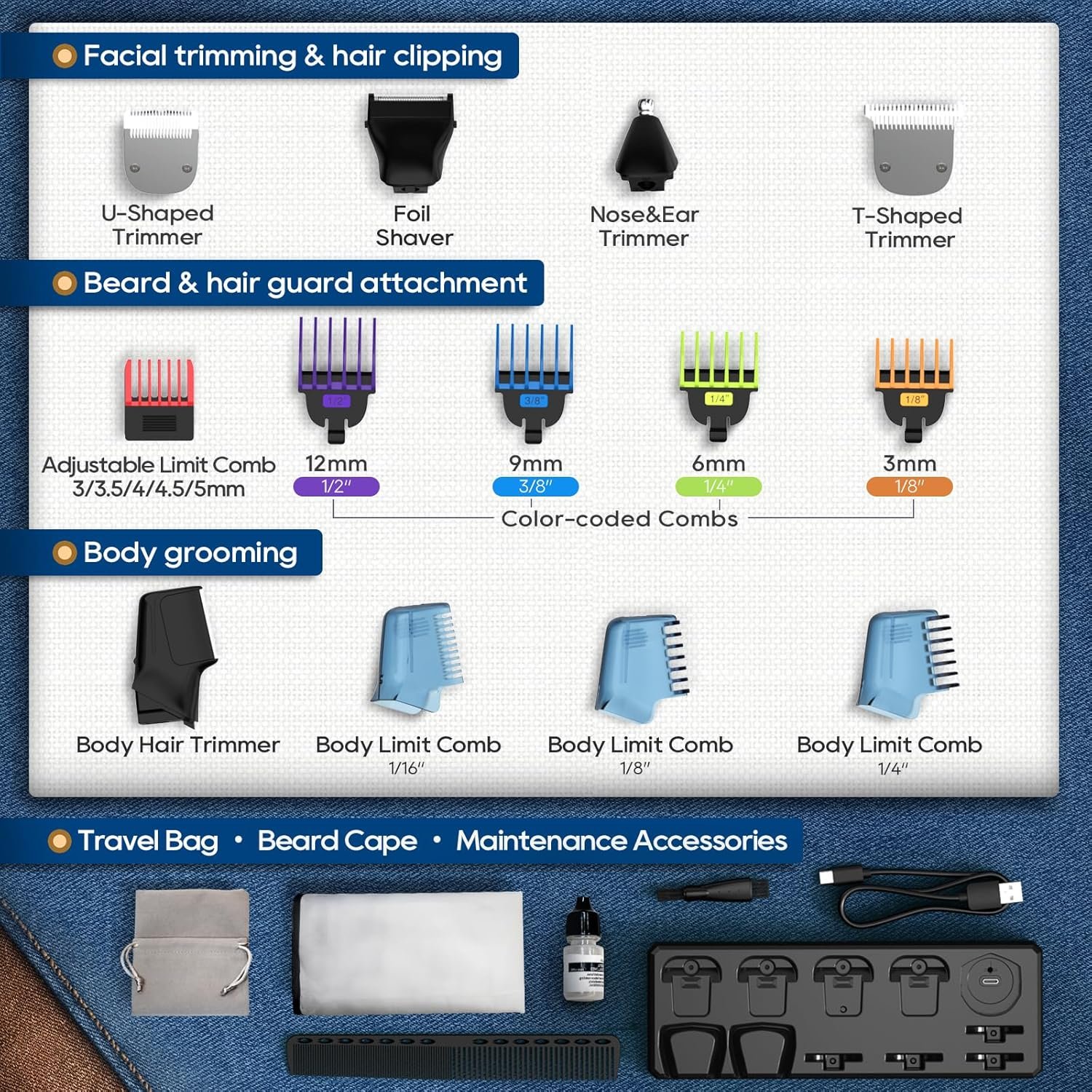Be the first to review “Beard Trimmer for Men, Magnetic Snap-on Replacement Heads & Charging Dock, IPX7 Waterproof Cordless Hair Clippers, Mens Grooming Kits for Mustache/Body/Face/Ear/Nose, Blue”
