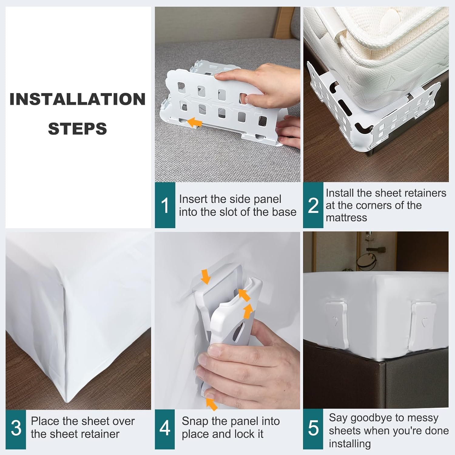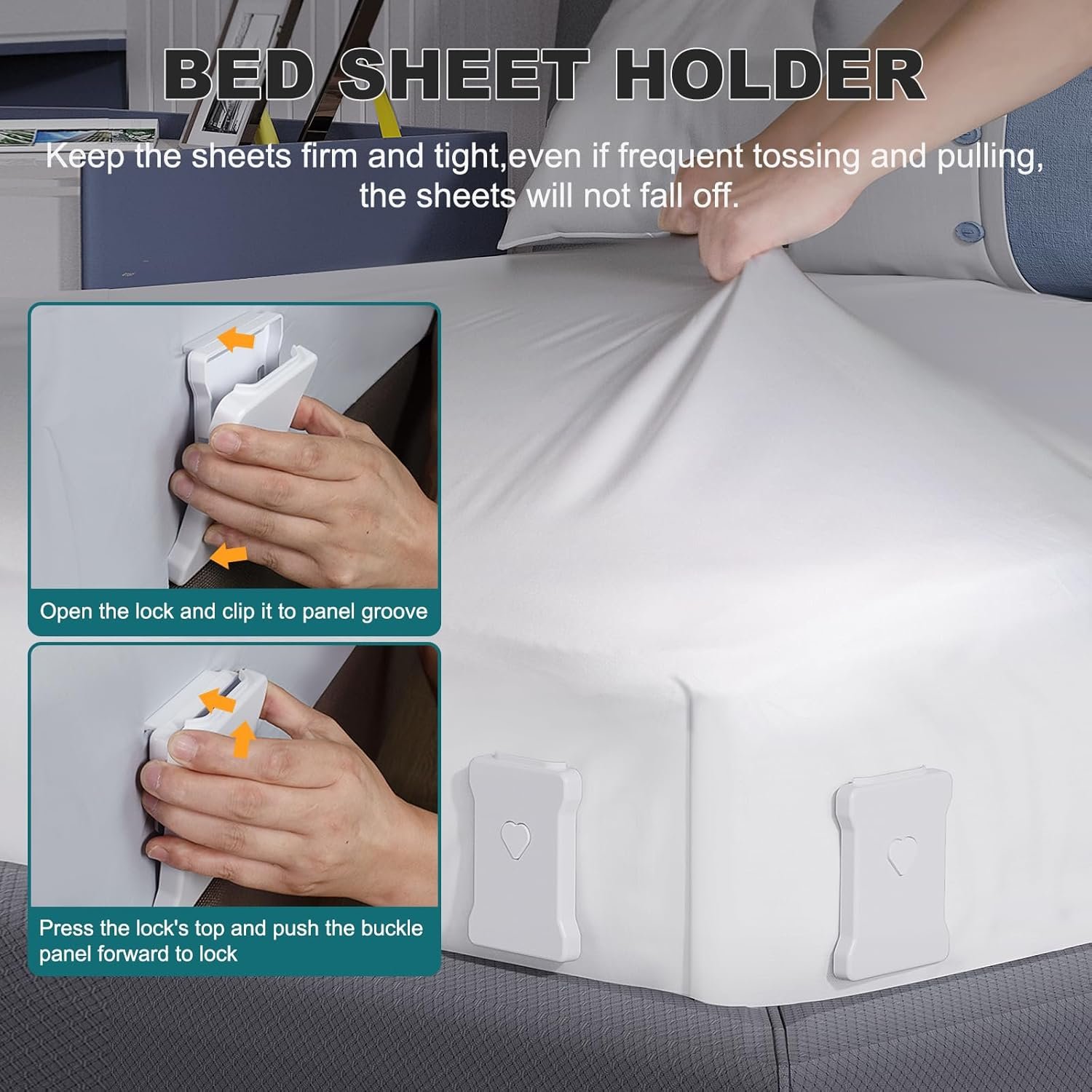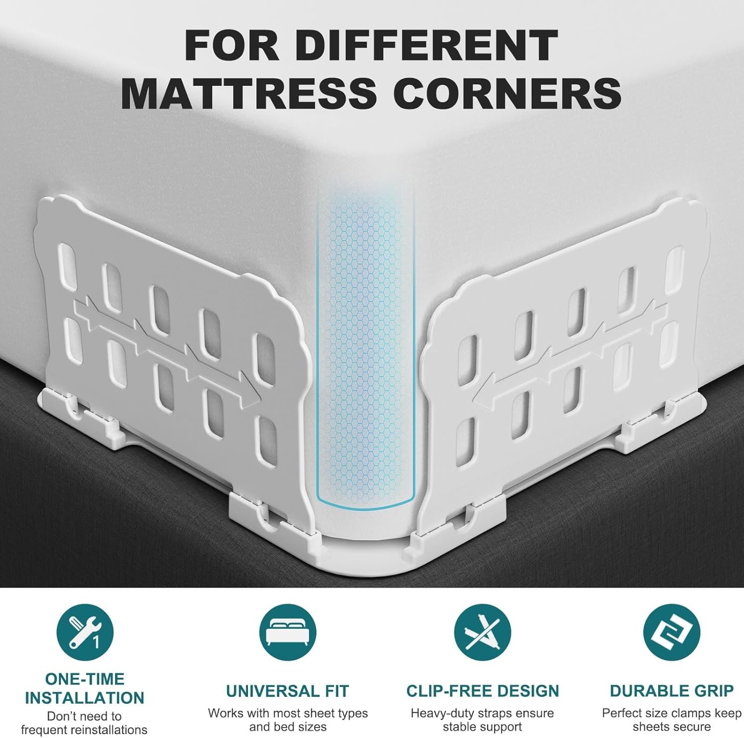 Bed Sheet Holders for Corners: Lock Sheet Holders with Reinforced Clips Keep Sheets Firm and Tight,No More Loose Sheets โ Upgraded Extra Large Version for Twin,Full,Queen,King Size Mattresses (White)