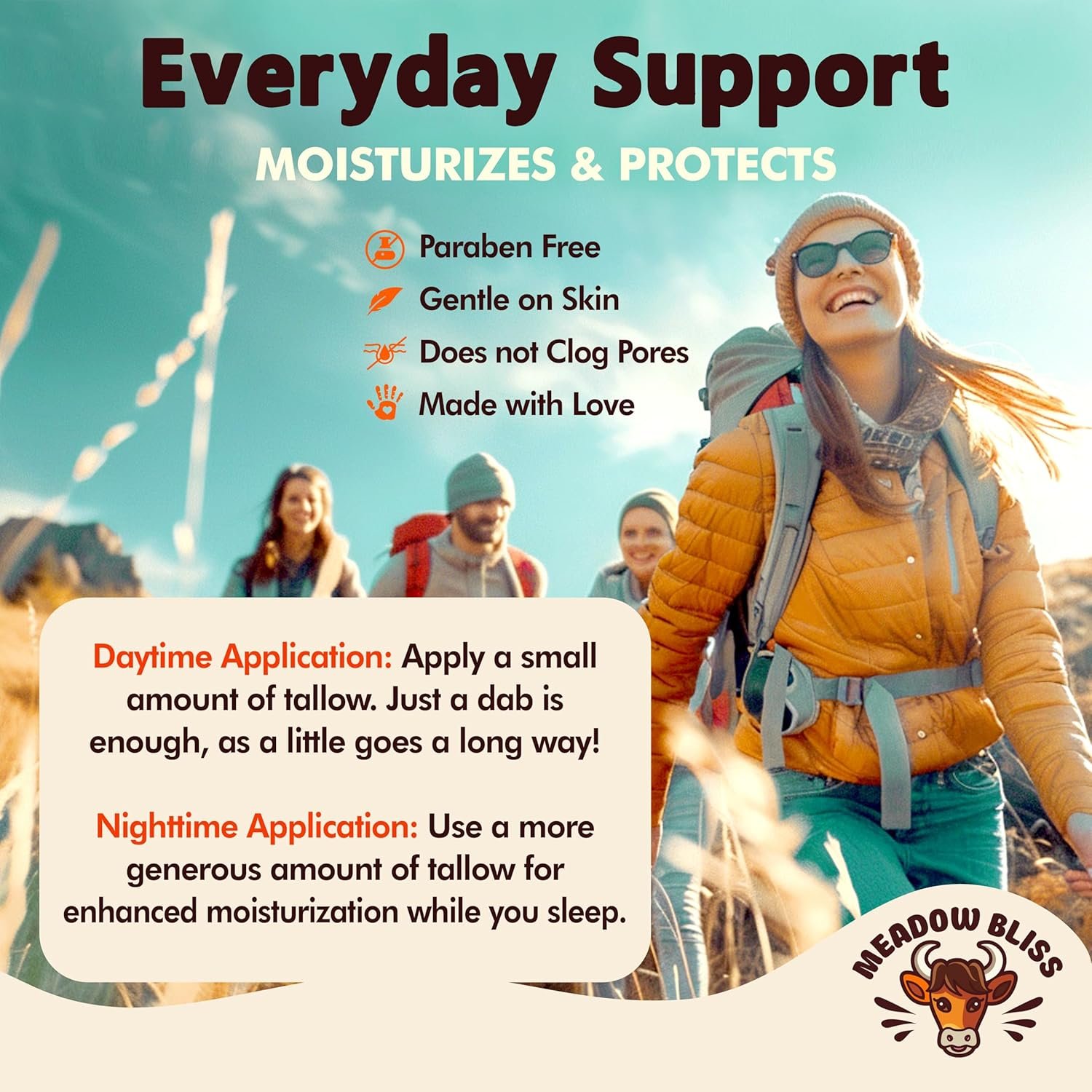 Sustainably Sourced & Made Locally – We slow-render our tallow from 100% grass-fed cows, ensuring the highest quality. Our simple yet effective ingredients are thoughtfully blended to create a cream that is both luxurious & environmentally conscious.