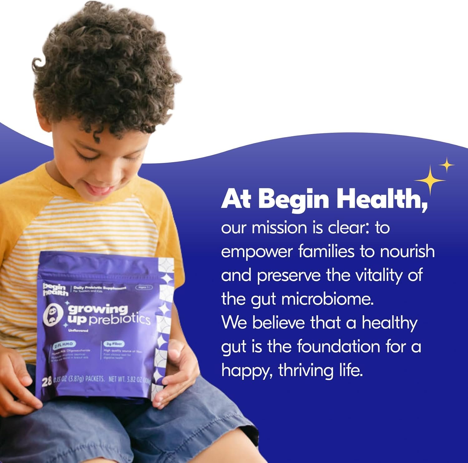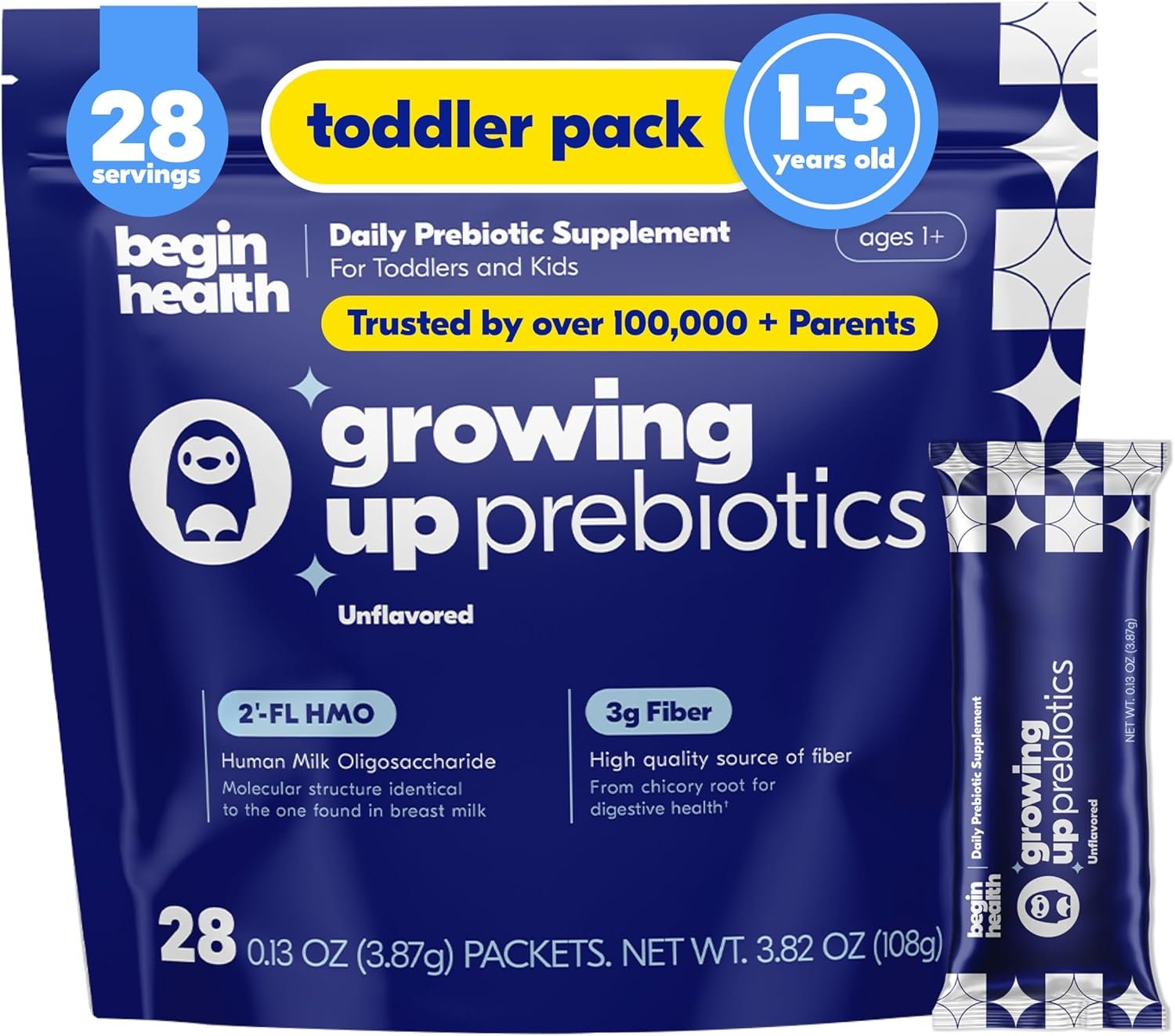 Begin Health Growing Up Prebiotics for Kids 28-Packs | Prebiotic Soluble Powder Stool Softeners and Digestive Gut Health Supplement | Ideal to Mix with Kids Daily Beverages and Soft Foods – Unflavored