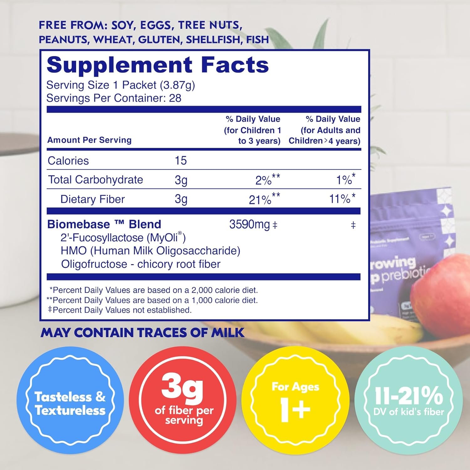 𝗚𝗘𝗡𝗧𝗟𝗘 𝗗𝗔𝗜𝗟𝗬 𝗚𝗨𝗧 𝗦𝗨𝗣𝗣𝗢𝗥𝗧: Helps feed beneficial gut bacteria to support regularity, nutrient absorption, and comfortable digestion for kids 1+.