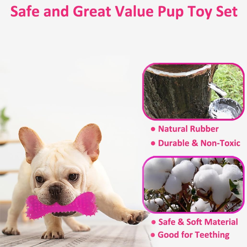 Delightful Toy Selection: Our pack consists of 20 adorable and entertaining toys tailored for puppies and small dogs. Featuring a wide variety of choices like rope toys, a treat-filled ball, rubber toothbrush bone toy, a tug of war toy, a pacifier toy, and teething rings, your furry companion will always stay entertained.
