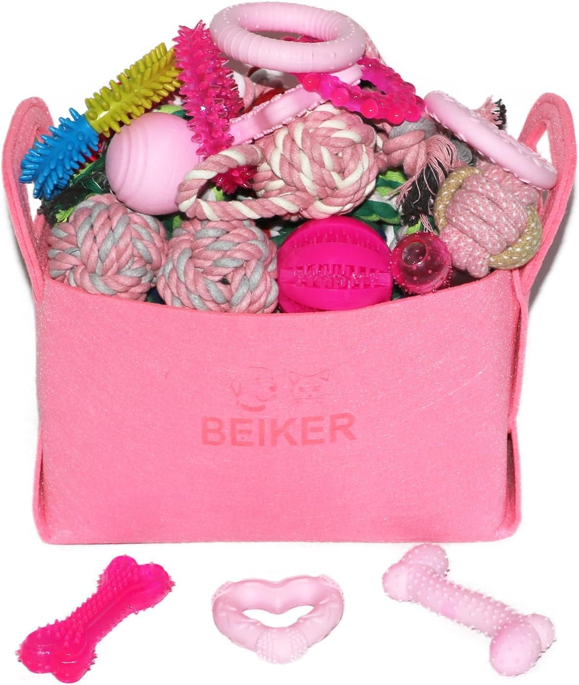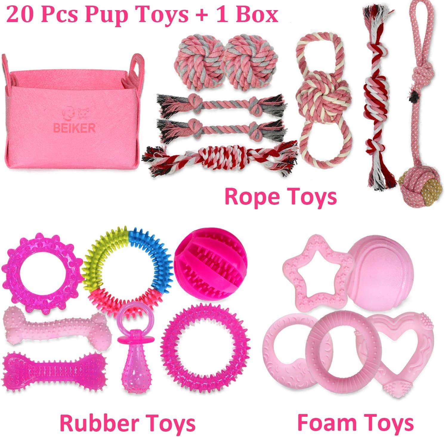 Beiker 20 Pack Pink Puppy Chew Toys – Dog Teething Toys for Puppies, Puppy Toys Toothbrush with Ropes, Soft Dogs Toy Bundle for Small Dogs, Cute Interactive Dog Balls for Chewers