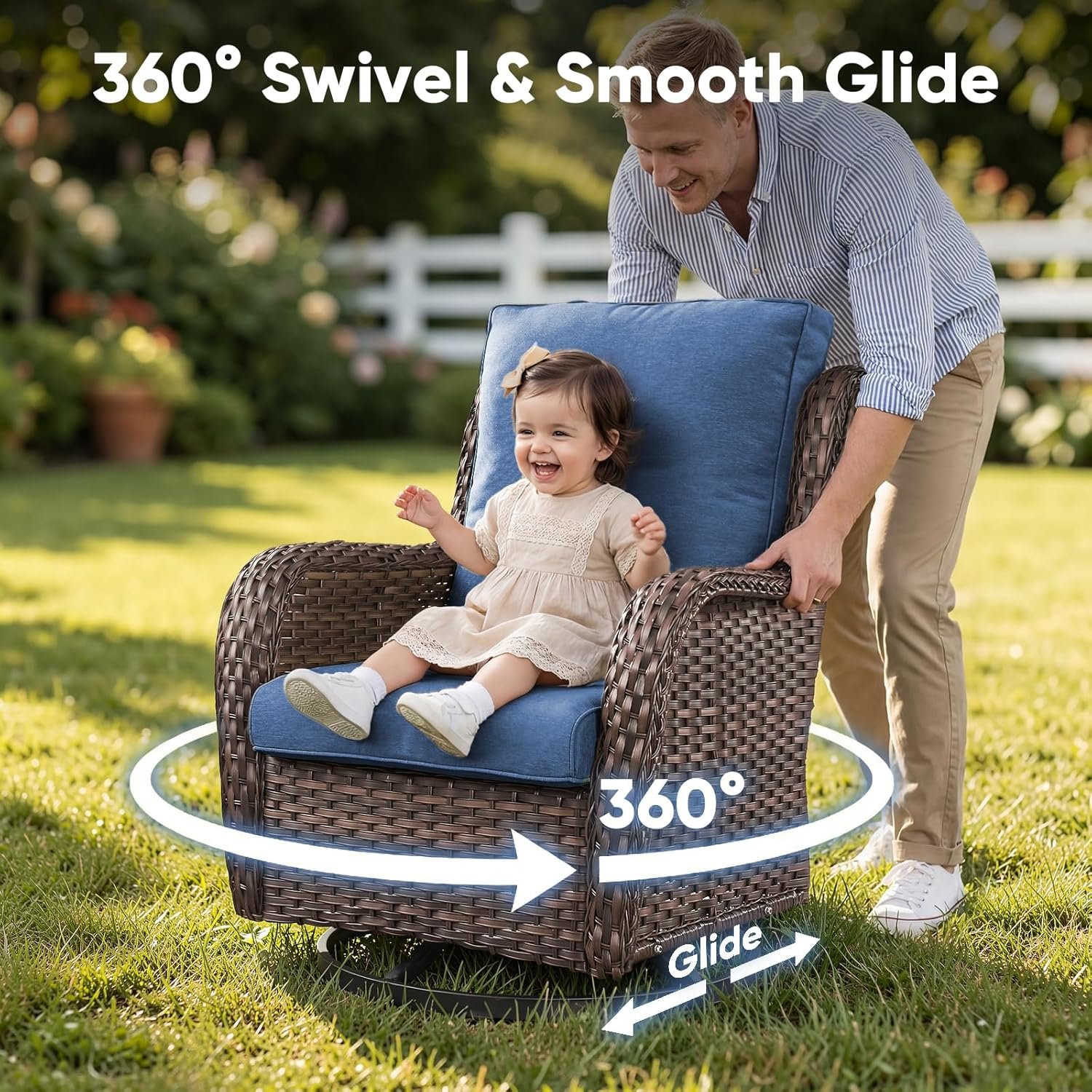 Effortless 360° Swivel & Gentle Glide: Claim your personal oasis. Gently rock with a book in these wicker swivel rockers, or effortlessly rotate to follow the sun’s warm path across your garden. Redefine relaxation in motion.