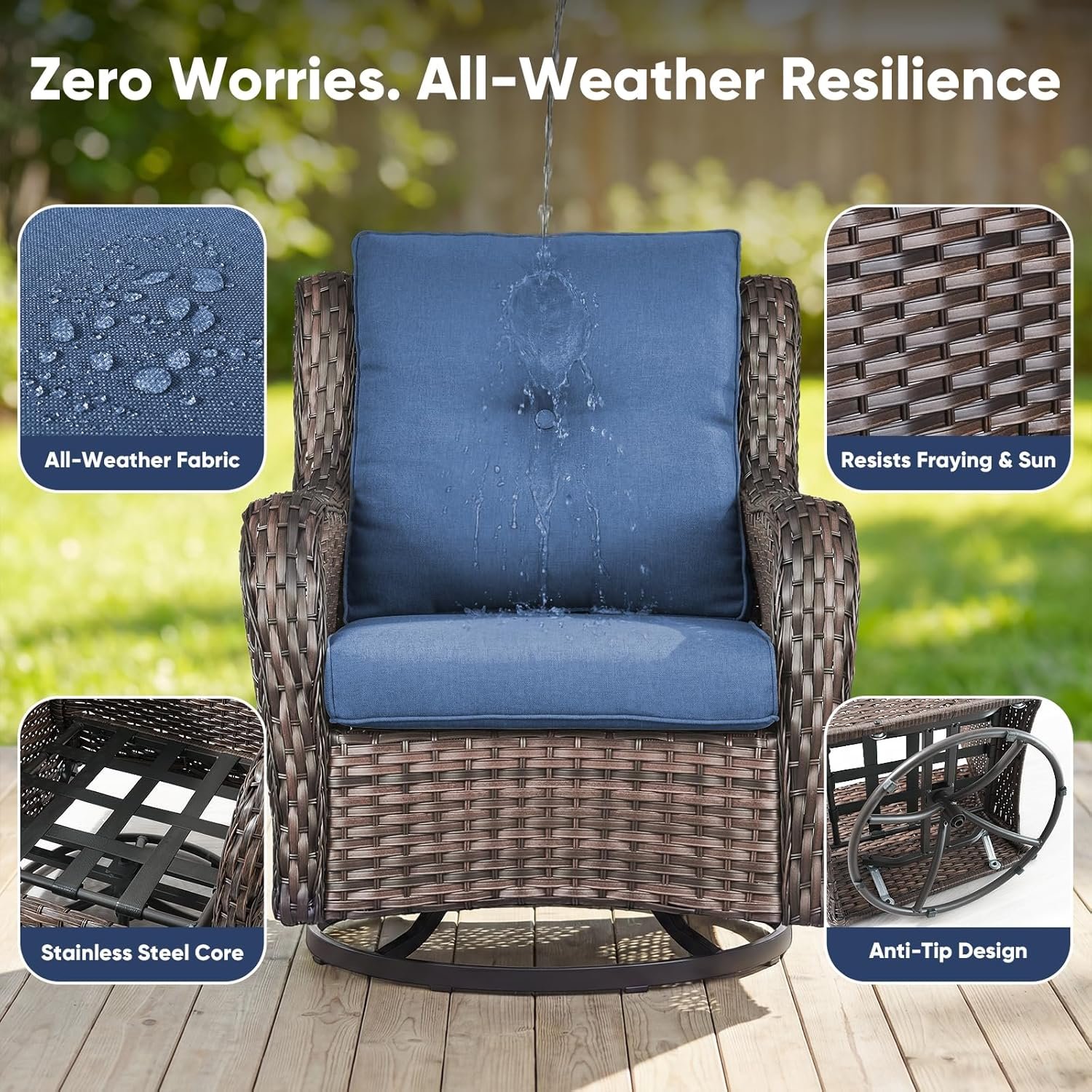 Built for All Weather, Engineered to Last: From the robot-welded steel frame to the fade-resistant PE rattan, every material in this Belord patio wicker chairs swivel rocker set is selected for decades of enjoyment