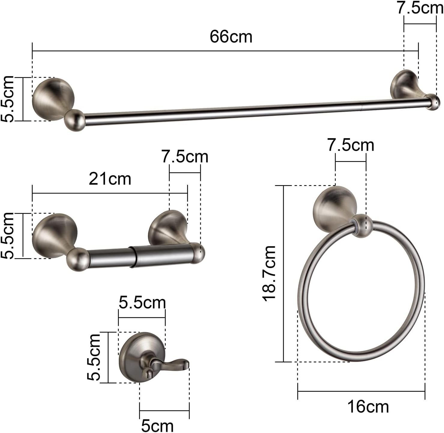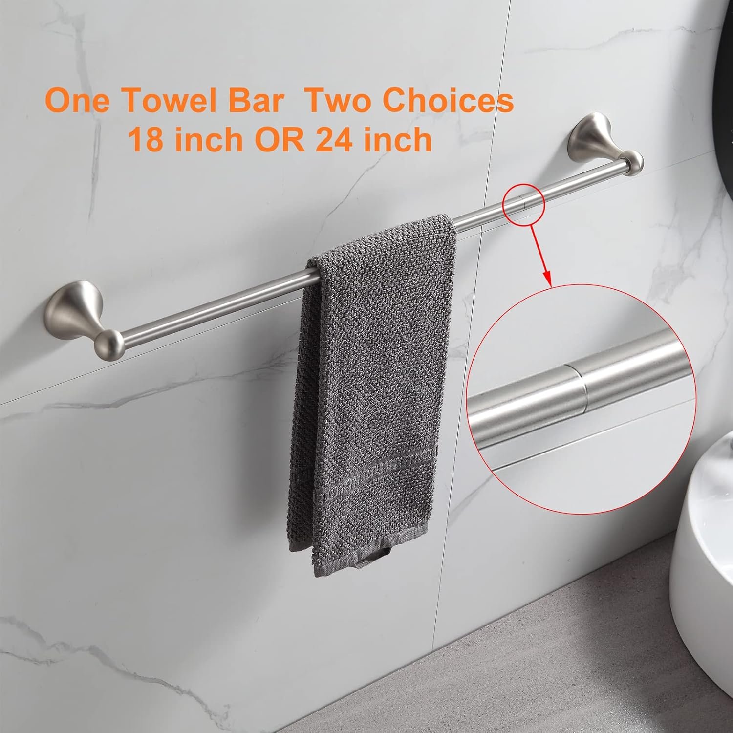 Adjustable Towel Bar – Single towel bar with 18-inch rod and 6-inch rod, allows you to choose 18-inch towel bar or 24-inch towel bar according to your needs.