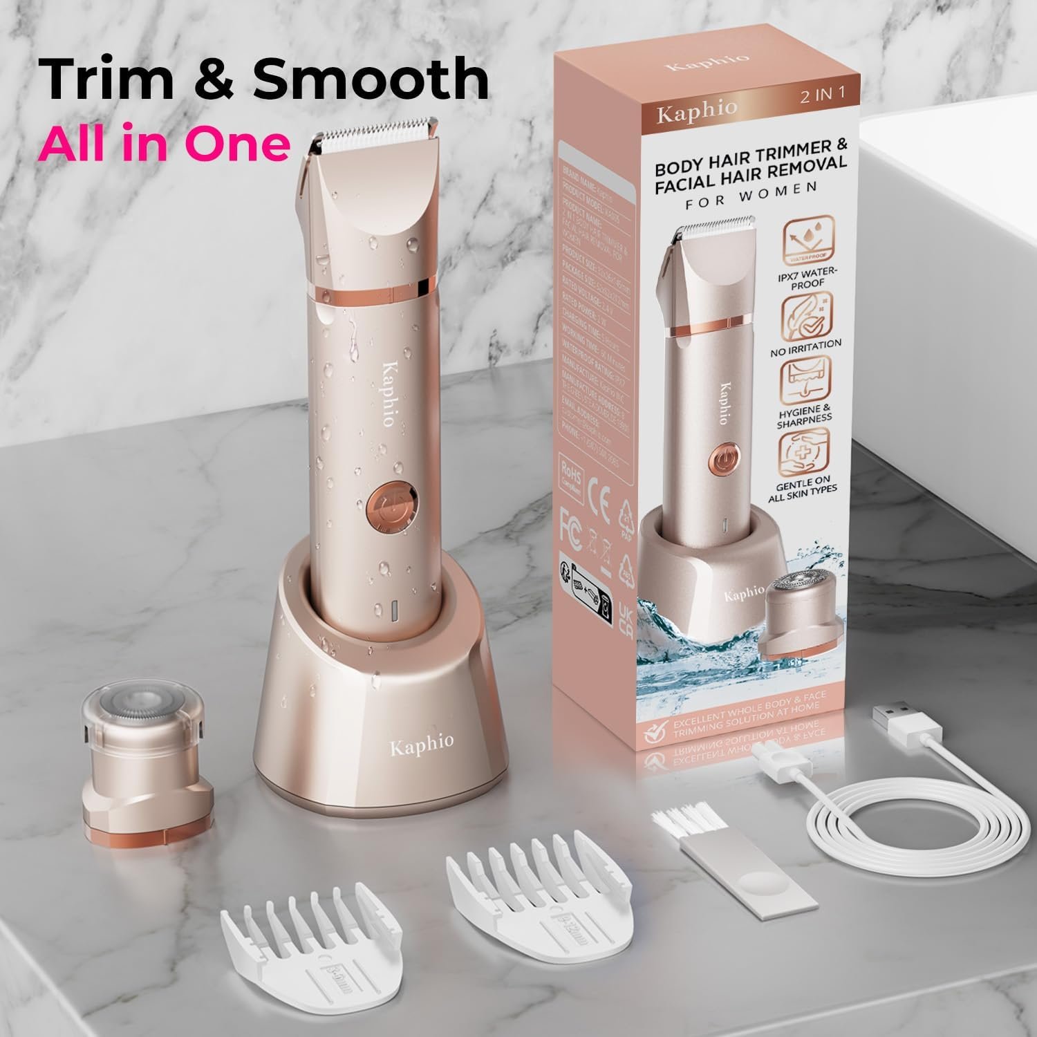 ALL-IN-ONE SOLUTION: Effortlessly trim larger areas like the bikini line, armpits, legs, and arms with our ceramic trimming head, while the rotary shaving head delivers a smooth, close finish for precise body grooming.