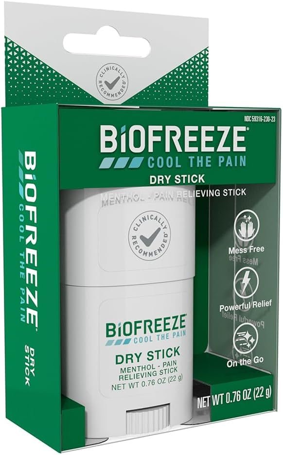 NEW BIOFREEZE DRY STICK: Our reliable menthol-based formula, now in a unique, mess-free format for portable pain relief—keeps you going while you’re on the go