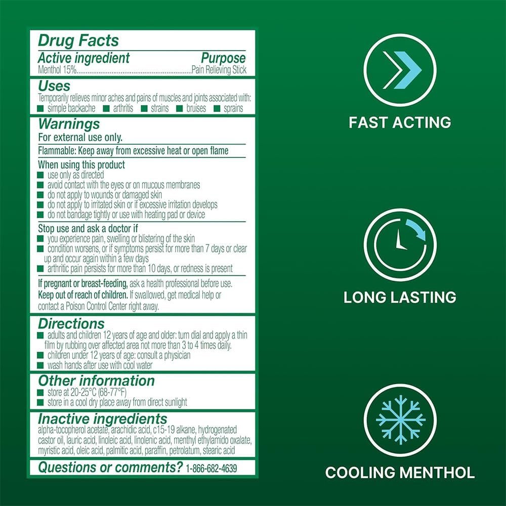 MENTHOL PAIN RELIEF WITHOUT THE MESS: Non-greasy dry solid format goes on dry & clear; Fits in your pocket for pain relief at your fingertips
