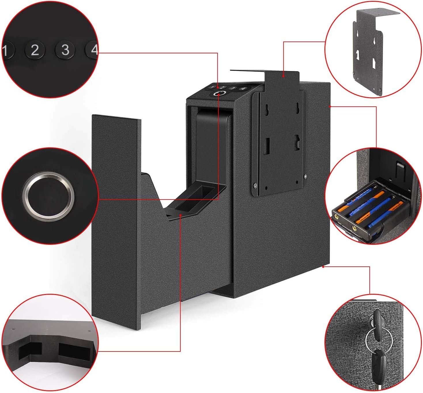 【Instant Home Defense, Quick firearm access in the ready position】 The digital PIN Code allows you to get quick access to your firearm. If your fingerprint is rough, it can’t be easily read by the fingerprint reader. Then this password version is perfect for you. You can also use manual keys if needed. The sturdy safe prevents children and others from reaching inside.