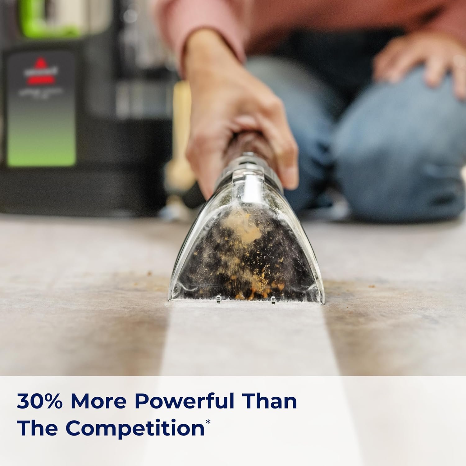 SUPERIOR SUCTION. 30% more powerful than the competitive portable deep cleaner.*
