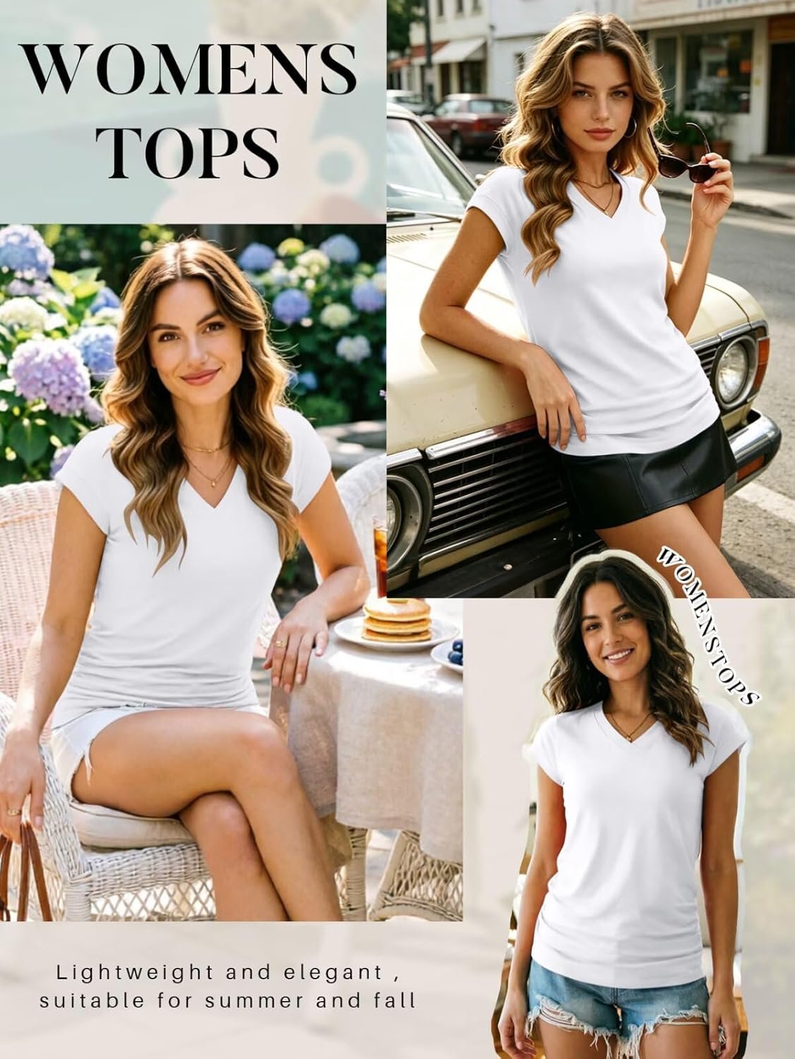 The video showcases the product in use.The video guides you through product setup.The video compares multiple products.The video shows the product being unpacked. Bliwov Womens Summer Cap Sleeve V Neck T Shirts Merchant Video