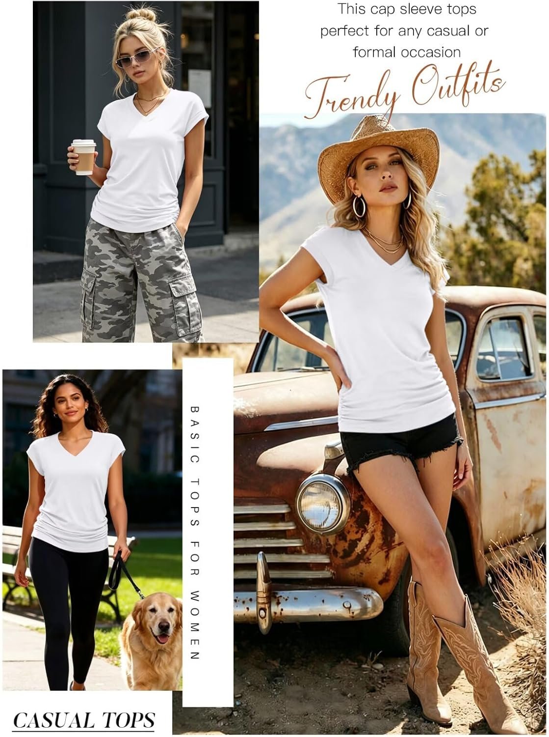 Bliwov Casual V Neck Basic T Shirts Winter Outfits Womens Summer Cap Sleeve V Neck T ShirtsWomens Summer Cap Sleeve V Neck T Shirts