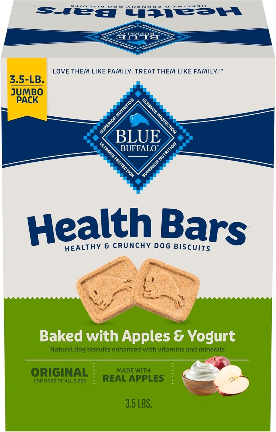 Blue Buffalo Health Bars Crunchy Dog Biscuits, Oven-Baked with Natural Ingredients, Apples & Yogurt, 3.5-lbs Box