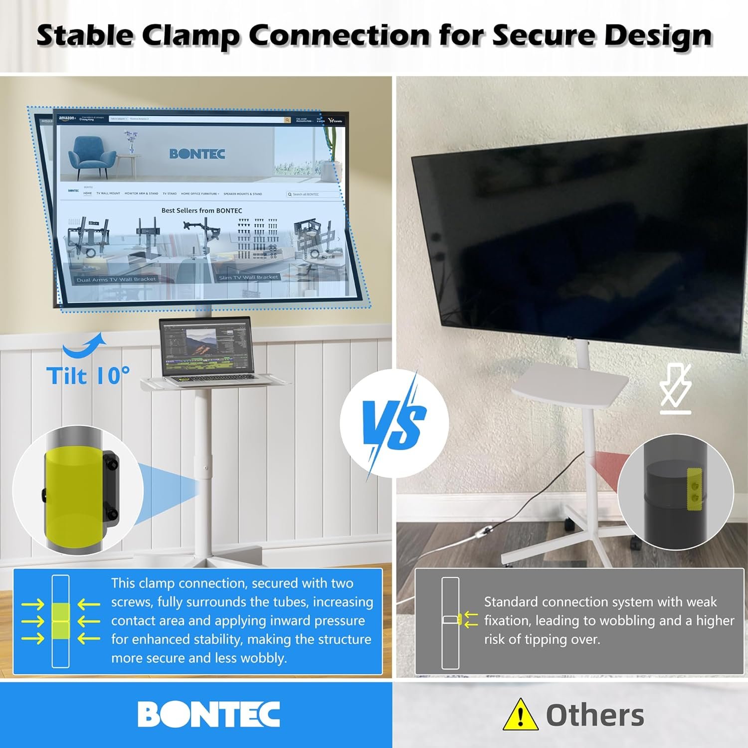 Be the first to review “BONTEC Mobile TV Stand with Tilt, Rolling TV Stand on Wheels for 23–60 Inch LED LCD TVs, Portable TV Cart with Adjustable Media Shelf for Living Room, Bedroom, Holds 88 lbs, Max VESA 400x400mm, White”
