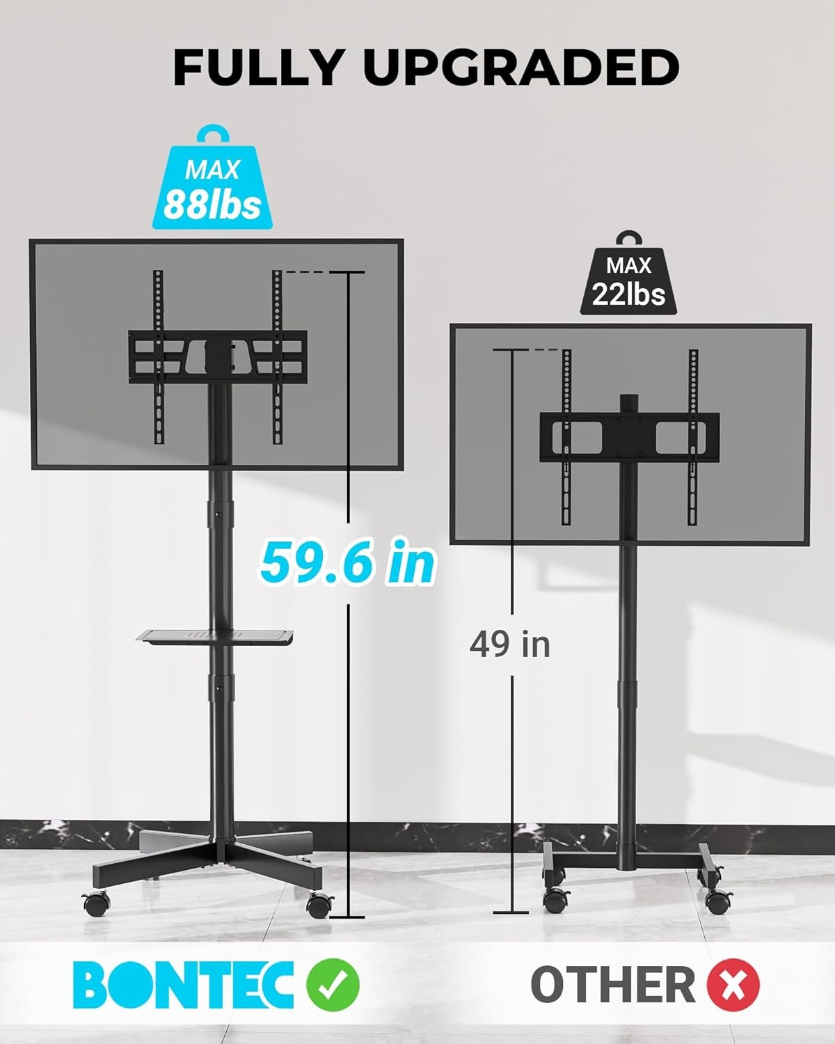 Be the first to review “BONTEC Mobile TV Stand with Tilt, Rolling TV Stand on Wheels for 23–60 Inch LED LCD TVs, Portable TV Cart with Adjustable Media Shelf for Living Room, Bedroom, Office, Holds 88 lbs, Max VESA 400x400mm”