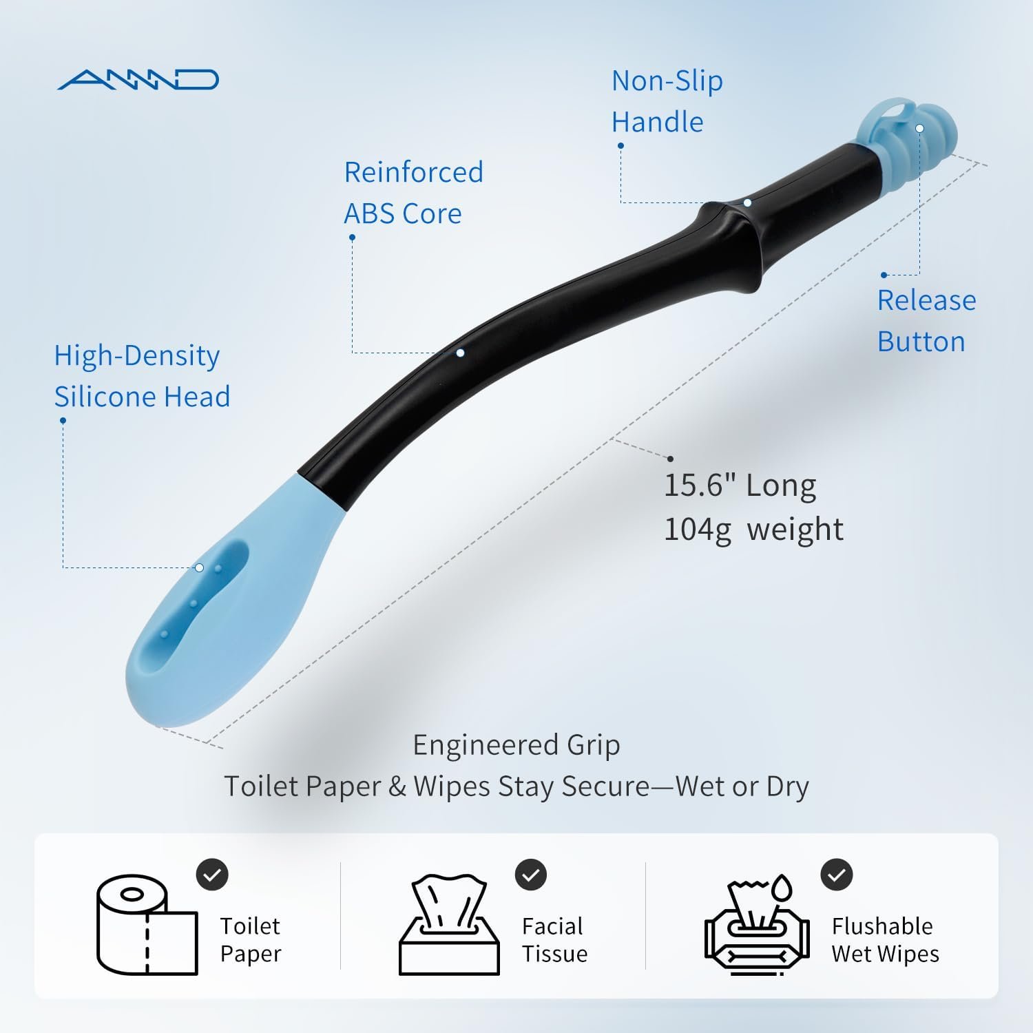 SECURE HOLD THAT WON’T FALL OFF: Tired of toilet paper slipping or falling mid-use? This butt wiper tool features a deep silicone groove that locks tissue securely in place for stable, worry-free cleaning—ideal for seniors, pregnant women, overweight individuals, and those recovering from surgery or with limited mobility.