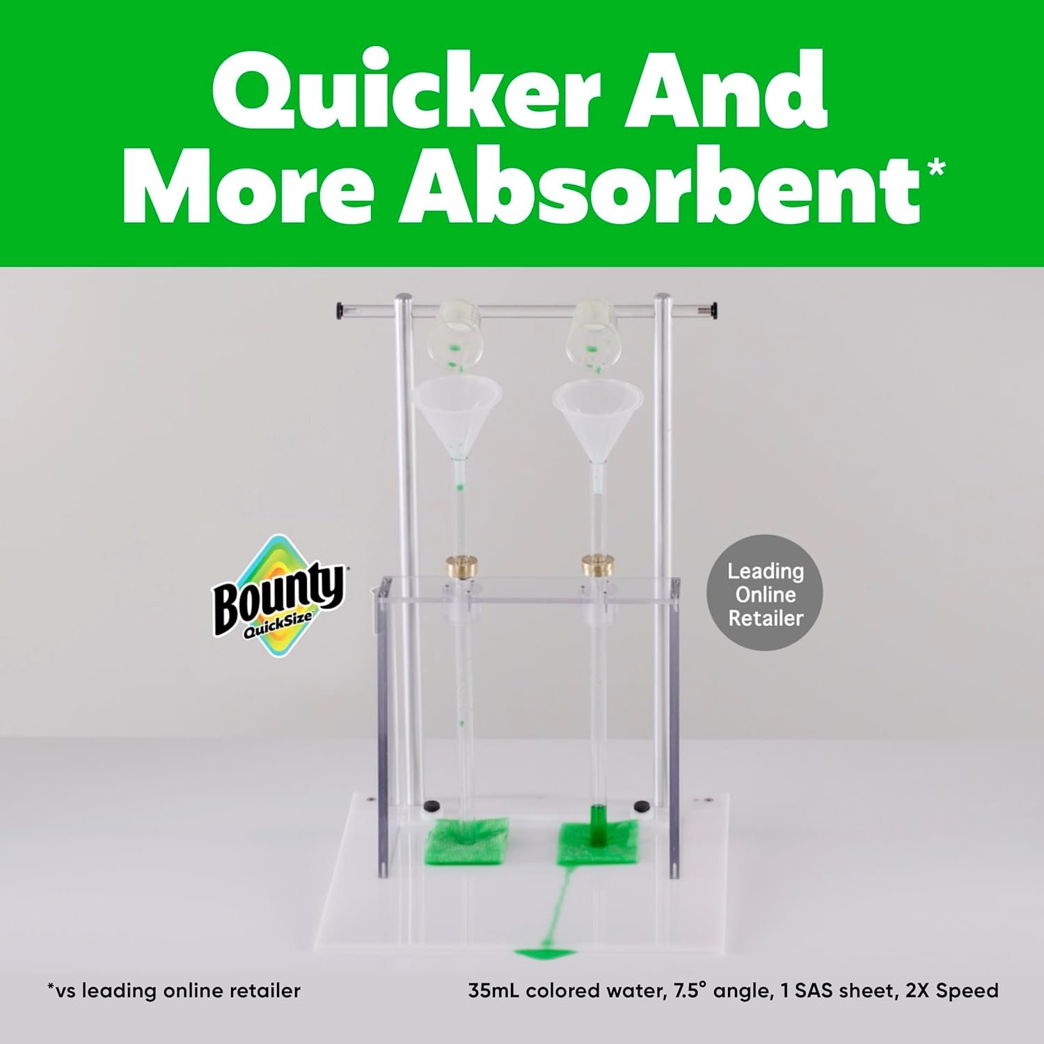 Bounty Quick Size Paper towels are 2x more absorbent, so you can clean up messes quicker and use less than the leading ordinary brand. Each sheet has a Durable Diamond Texture to tackle anything from everyday spills to tough projects throughout your home. A variety of pack and rolls sizes are available, and going bigger means you change the roll less often vs Bounty Regular Rolls to always have Bounty on hand. Buy in bulk! Bounty Quick Size towels have easy tear sheets, so you can select your sheet size based on the size of your mess.