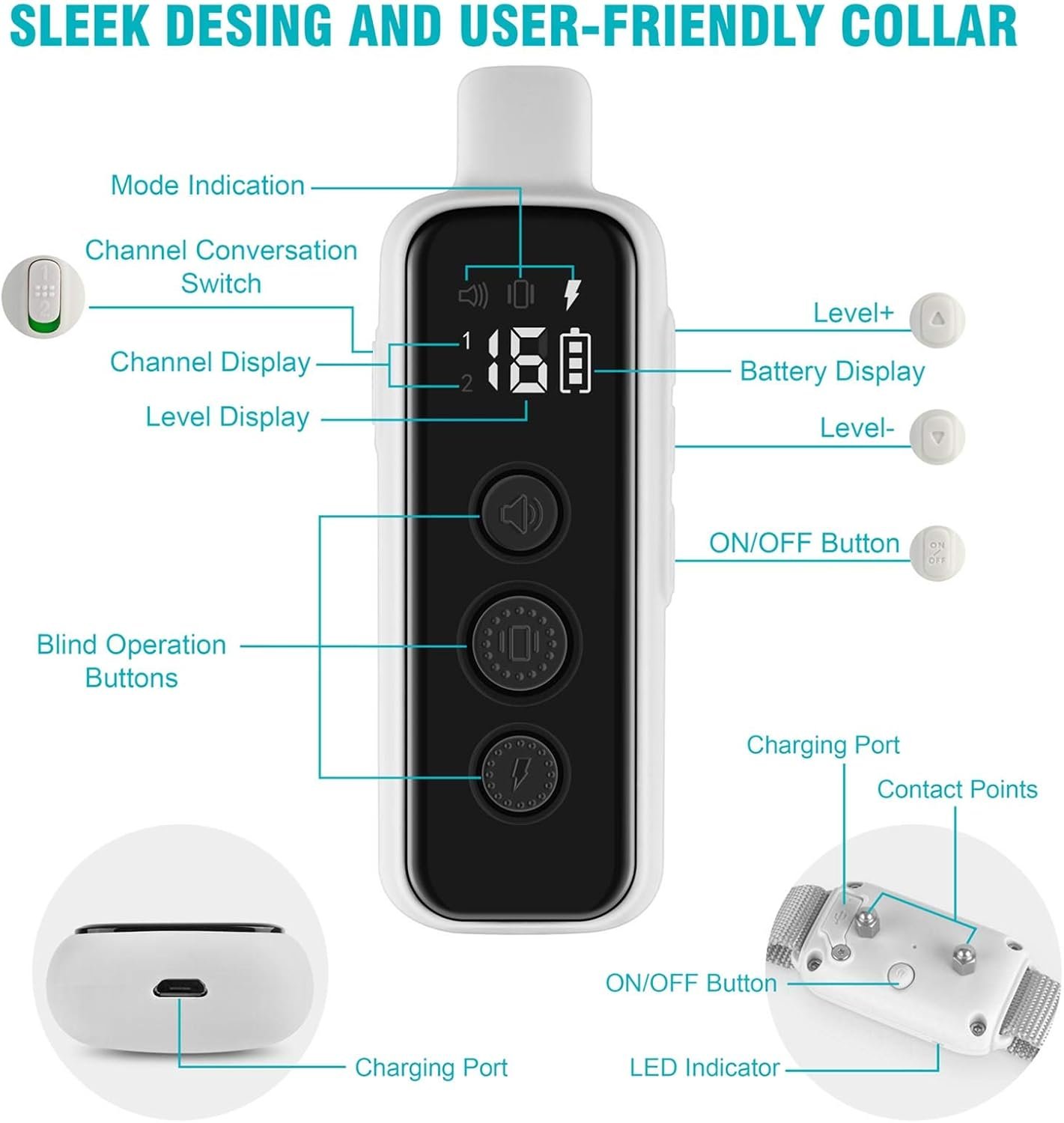 Dual-Channel with Up to Almost 1000FT Range: Our remote features a dual-channel to support training 2 dogs simultaneously. The remote training range of this e collar is almost 1000FT, which makes sure you can enjoy the training time with your dog in the backyard, the park, at the beach, or anywhere else