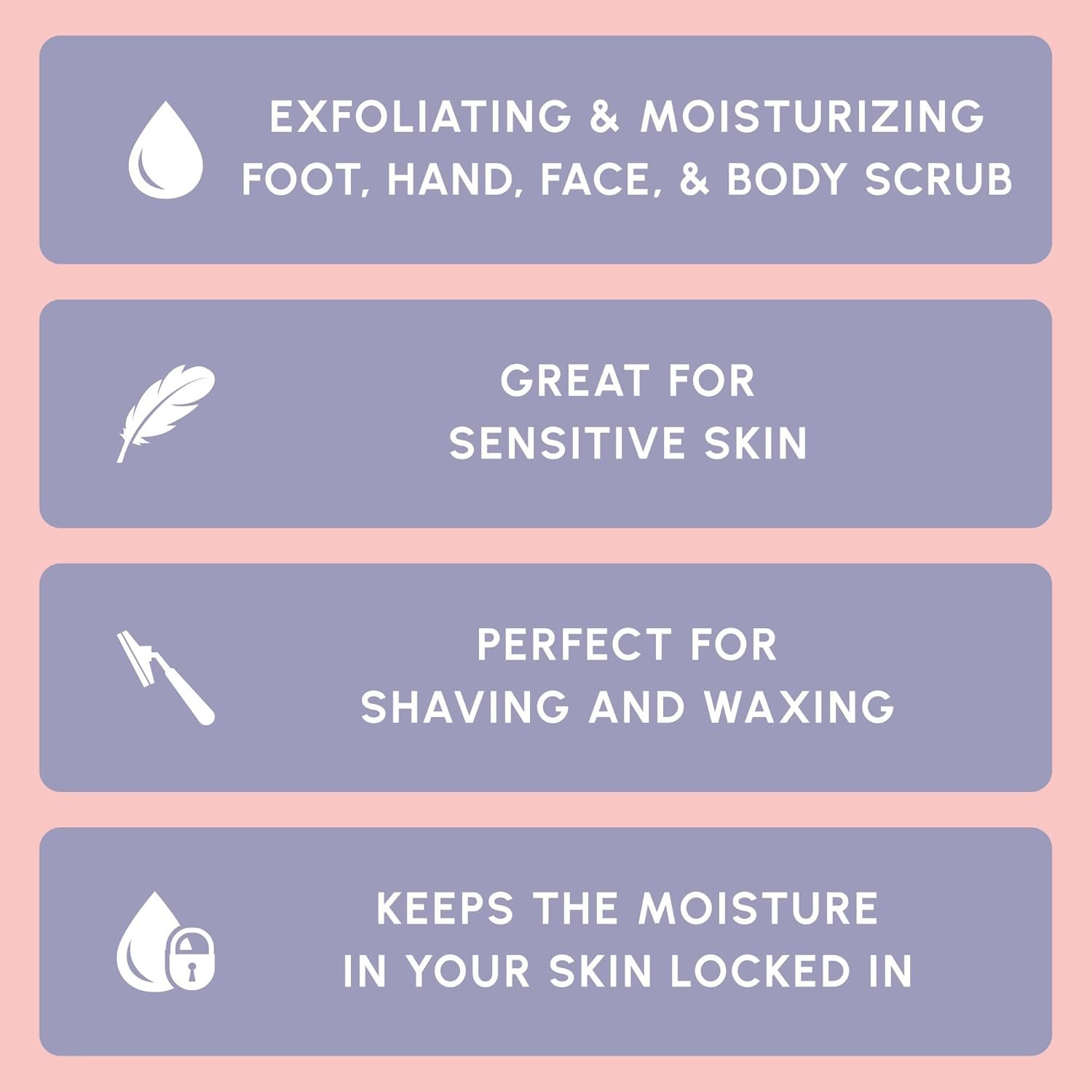 GREAT FOR SENSITIVE SKIN: While salt scrubs may be too harsh for sensitive skin, this Brown Sugar Scrub is a great facial scrub exfoliator and for sensitive skin. It is softer than regular sugar scrubs, while remaining strong enough to scrub away dead skin cells and make way for the healthier, glowing clear skin. Use our Brown Sugar Facial Scrub, Body Scrub, Foot, and Hand Scrub for moisturized smooth skin.