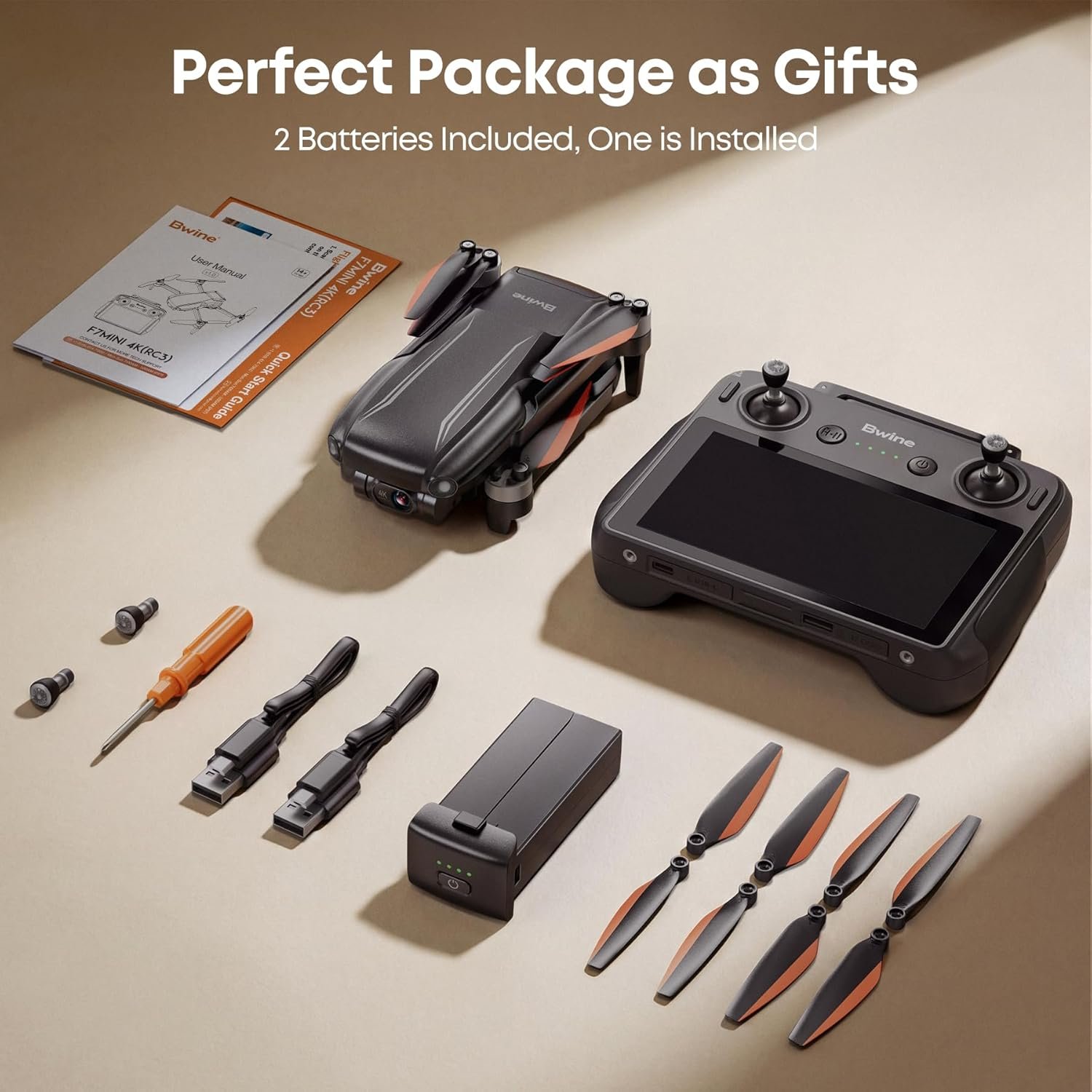 【What You Will Get】: 1 x F7MINI 4K(RC3) drone, 1 x screen controller,2 x batteries, 1 x carrying shell case, 2 x charging data cable, extra set of replacement propellers (with screwdriver), 1 × instruction book. Besides, please worry-free ordering: – full English manual + video guide – 24/7 local nanny-level after-sales service support (app/email/phone), – 2-year drone warranty + lifetime firmware updates.