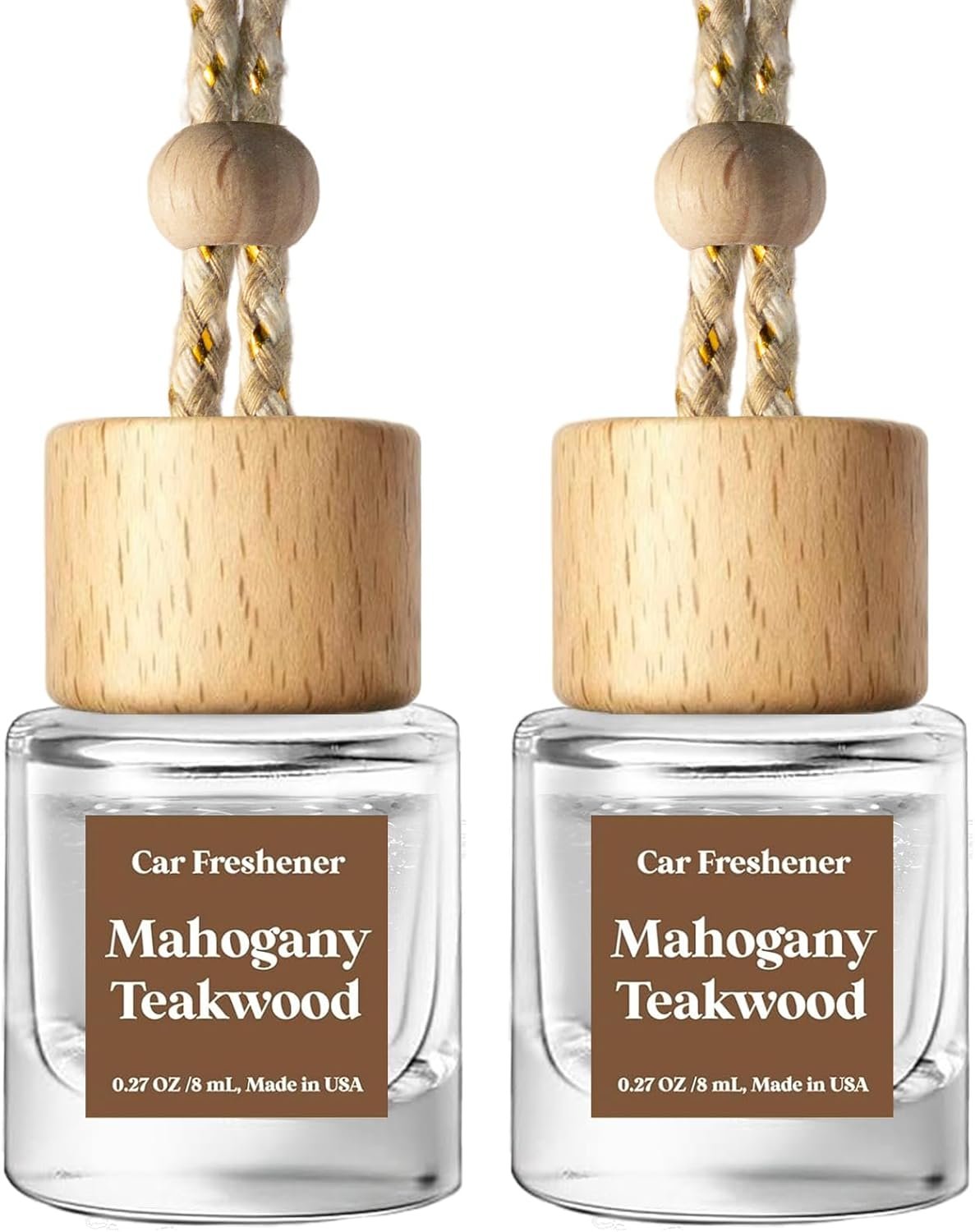 C Classy Car Air Freshener Hanging 2 Pack, Mahogany Teakwood Essential Oil Diffuser for Cars, Cute Glass Bottle Car Accessories for Women & Men Gift, Long-Lasting Fragrance, Made in USA
