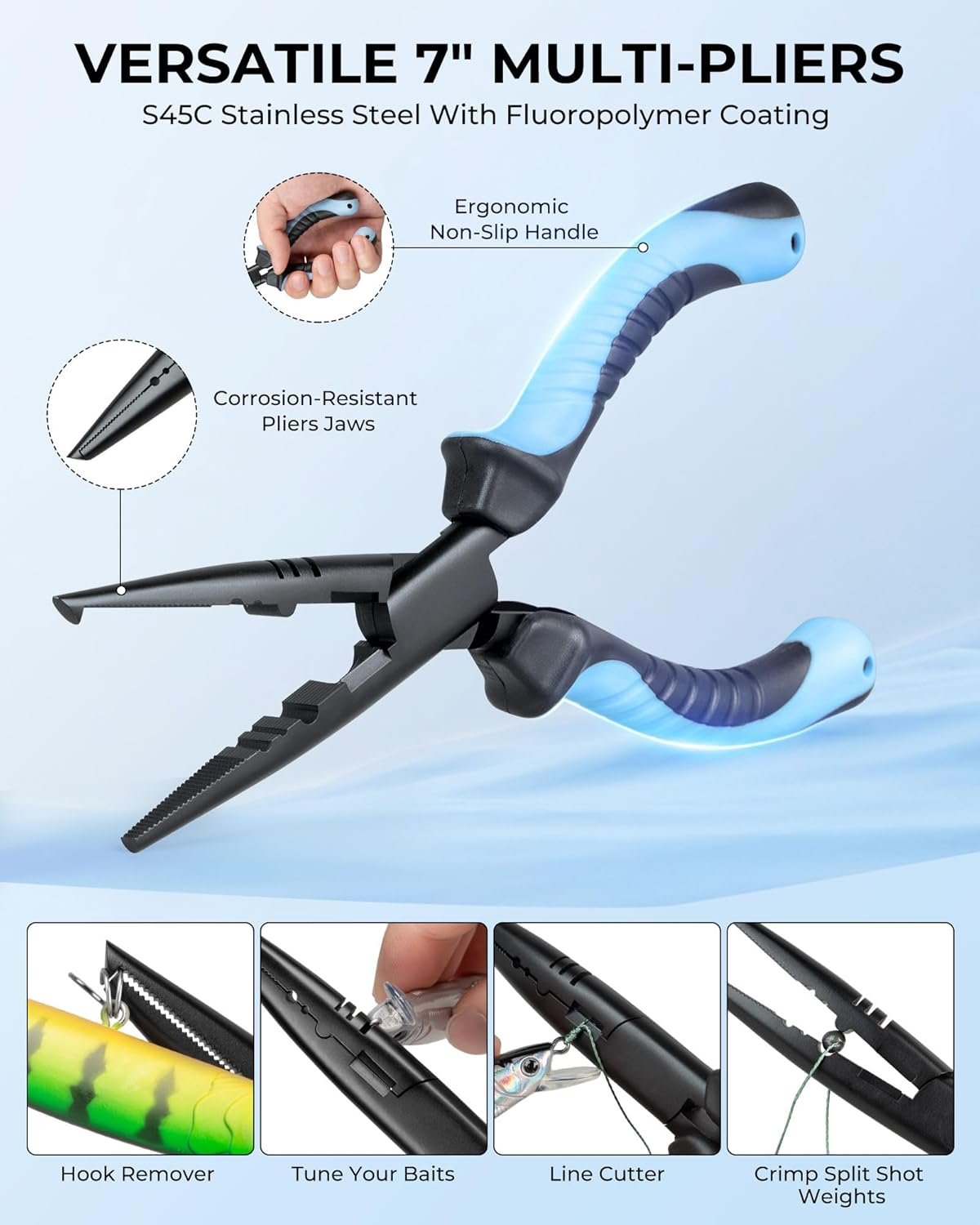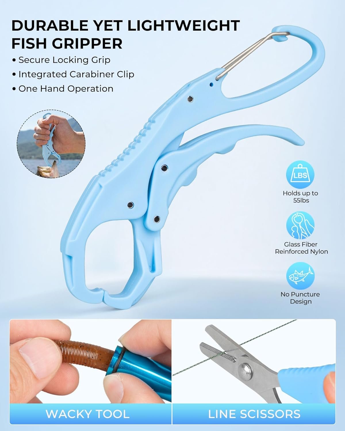 Pro-Level Fishing Tools Included: Comes with essential fishing tools including 7” multi-function fishing pliers, stainless steel line scissors, durable nylon and fiberglass fish lip gripper with one-hand operation, and a Wacky rig O-ring tool. Glove-friendly dual zippers with pull tabs allow quick access even with wet hands.