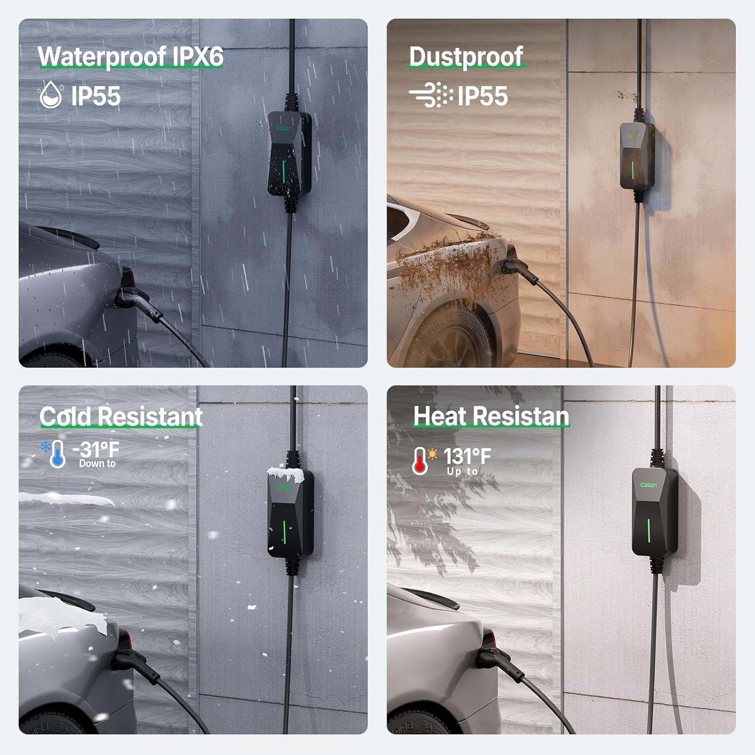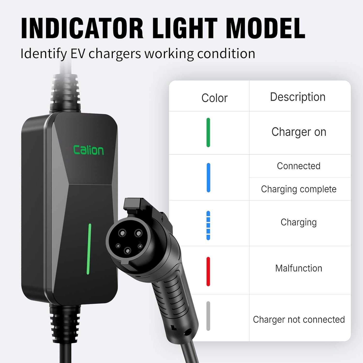Smart and Convenient: This Calion Level 2 EV Portable Charger, designed for J1772 EVs, adopts a screen-free design, focusing on simplicity and practicality. Equipped with clear LED indicator lights, the device can display the operating status, facilitating intuitive understanding of the charging situation.