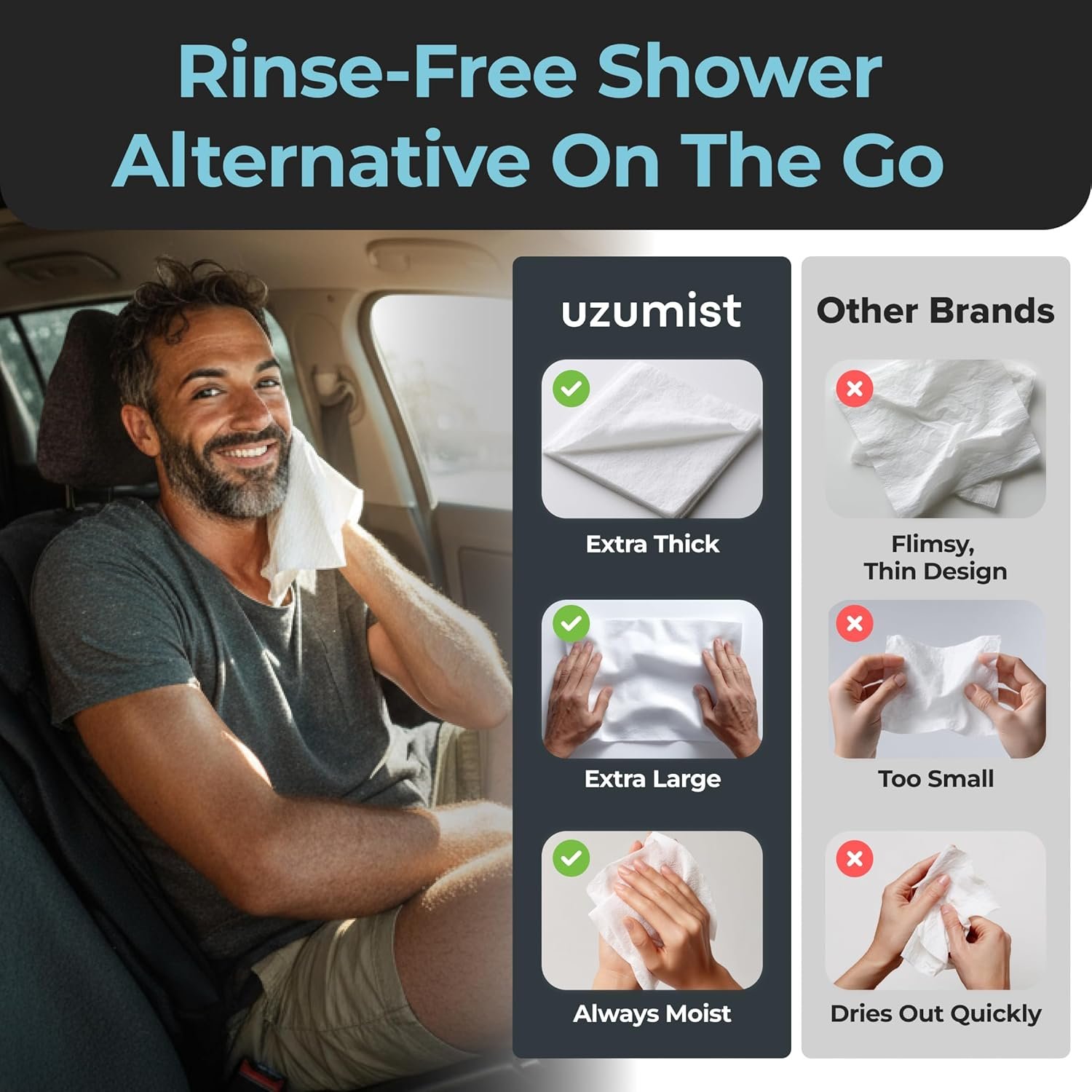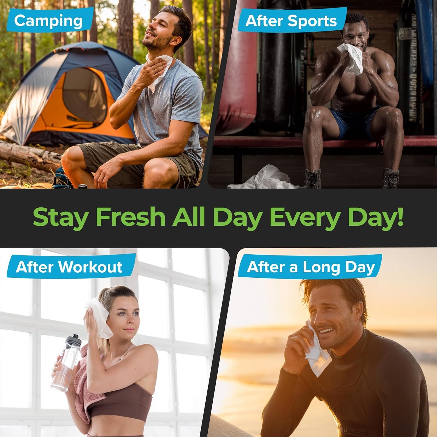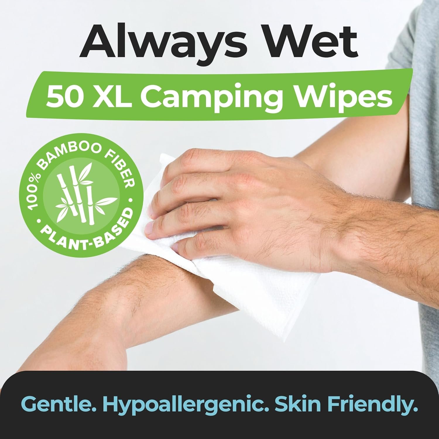 Stay Clean Anytime with Body Wipes for Camping – Perfect for Refreshing Skin Without Water. Each camping body wipes pack contains 50 XL wet shower wipes that are ultra thick and ideal for quick body hygiene. These full body wipes for adults bathing no rinse are must have camping essentials for personal hygiene. Super refreshing after sports, workouts, hiking or any physical activity. A convenient, portable shower alternative for daily freshness on the go.