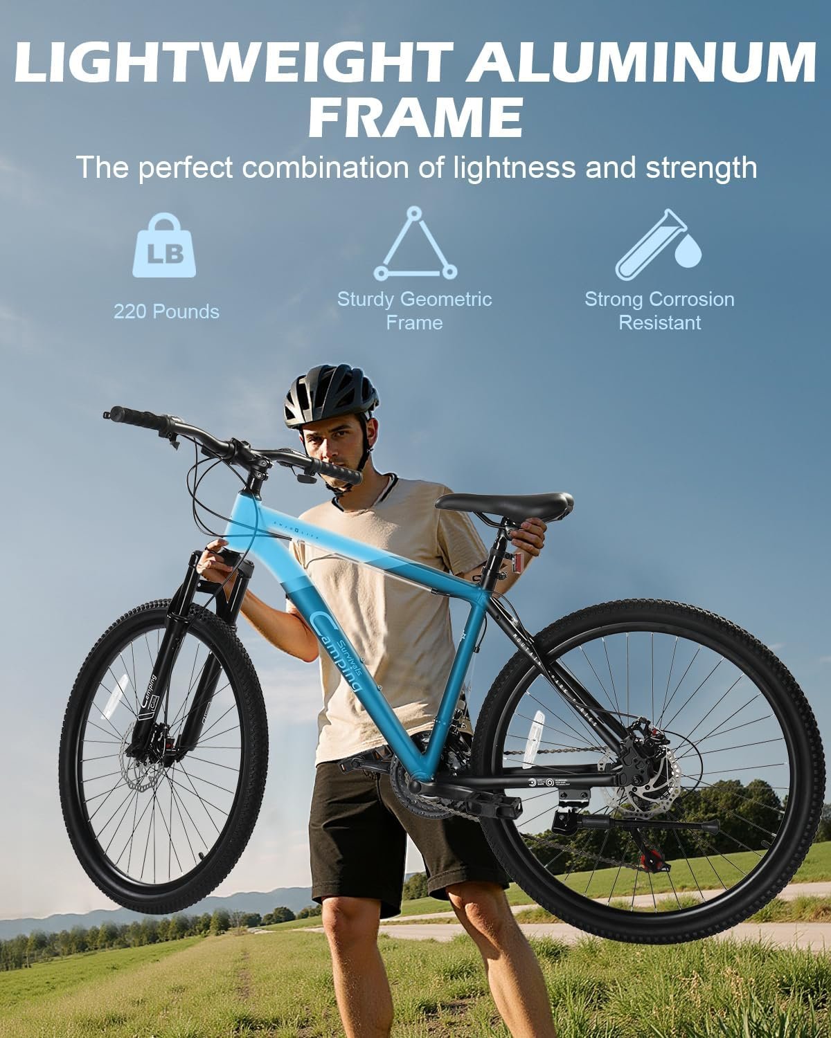 CamPingSurvivals 26/27.5″ Mountain Bike 21 Speed Men’s Mountain Bike with Lightweight Aluminum Frame, Powerful Dual Disc Brake, Precision 21 Speed Shifting, Men’s Bicycle for Commuter & Travel
