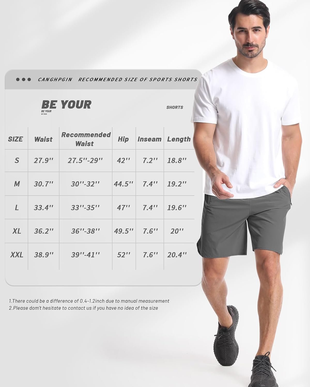 CANGHPGIN 2 Pack Mens Workout Athletic Shorts 7 inch Inseam Quick Dry Hiking Shorts Men Lightweight Sports Gym Shorts Running