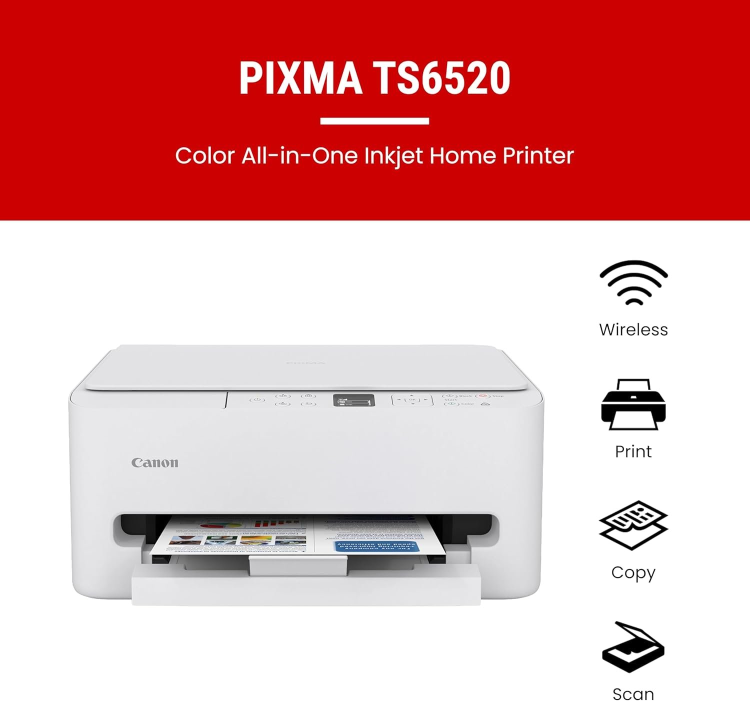 Canon PIXMA TS6520 Wireless Color Inkjet Printer Duplex Printing, White – Home Printer with Copier/Scanner, 1.42” OLED Display, Intuitive Control Panel, Compact Design