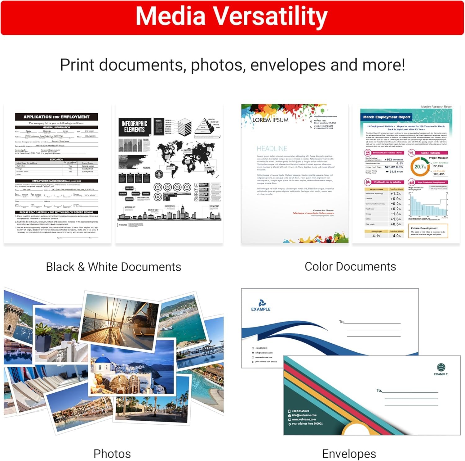 Diverse Media Support – Print a wide range of documents and photos up to 8.5” x 11”, with or without borders, for all your creative and professional needs