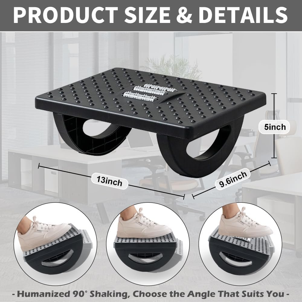 Ergonomic Office footrest: Foot area surface measuring 13″ by 9.6″. Our footstools under the table provide all-day foot massage. Keeping your feet and legs elevated will help improve your posture. Rest your foot at work or when resting at home after a long day at the office.