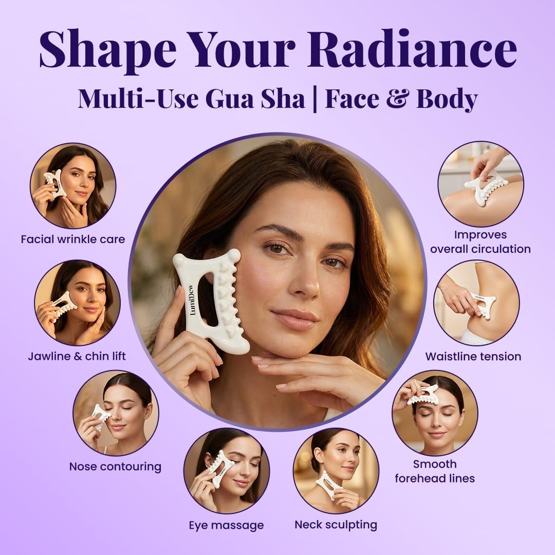 Ceramic Guasha Tool for Face & Body – Lymphatic Drainage Massager, Face Sculpting Tool, Jawline Shaper & Double Chin Reducer – Self Care Gifts