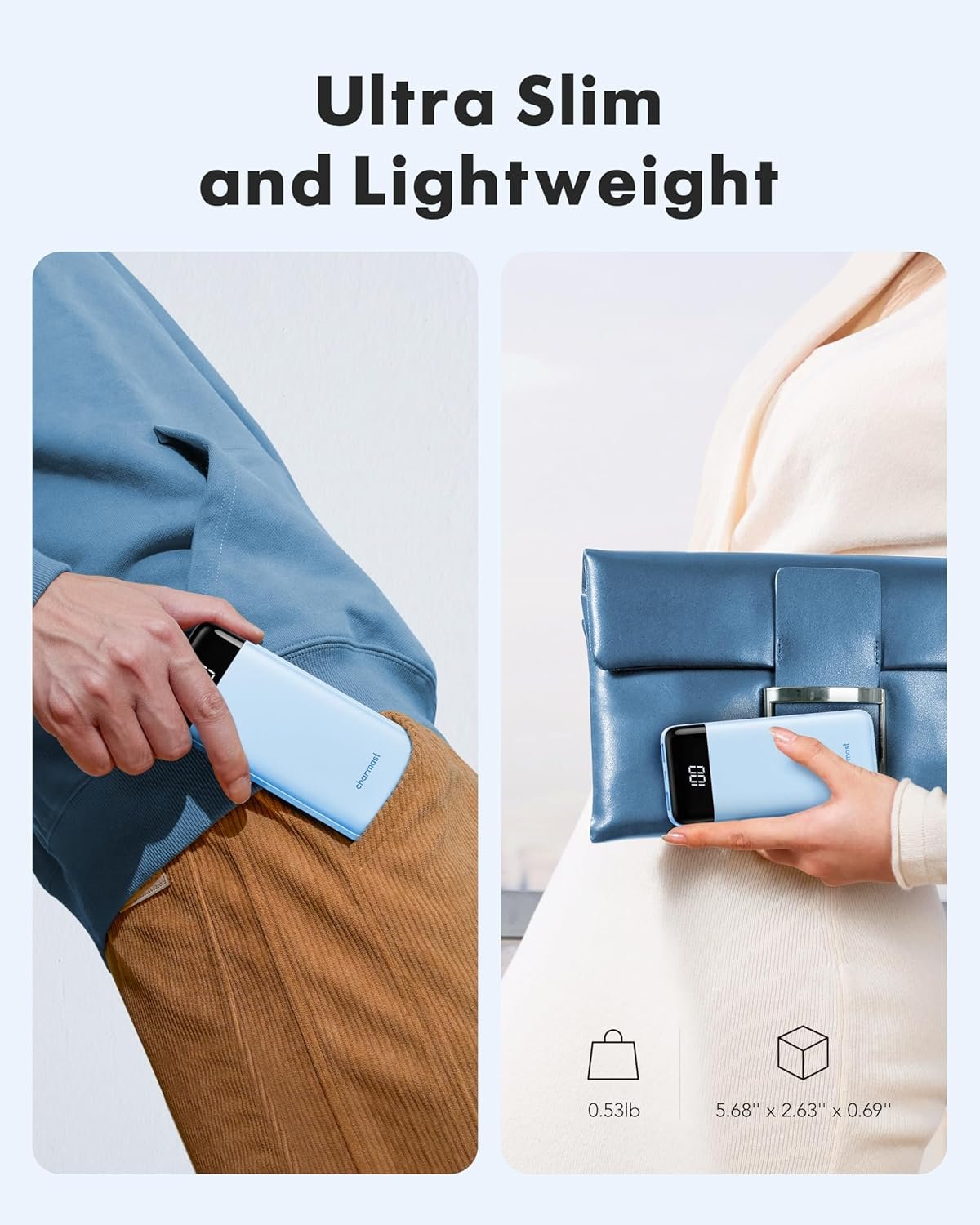 【Super Slim & Smart: See Your Exact Battery Level】Incredibly pocket-friendly design,lighter and slimmer than most phones! Always know exactly how much power is left thanks to the clear digital LED display. Never get caught off guard with a dead power bank again. Perfect for travel and daily carry!