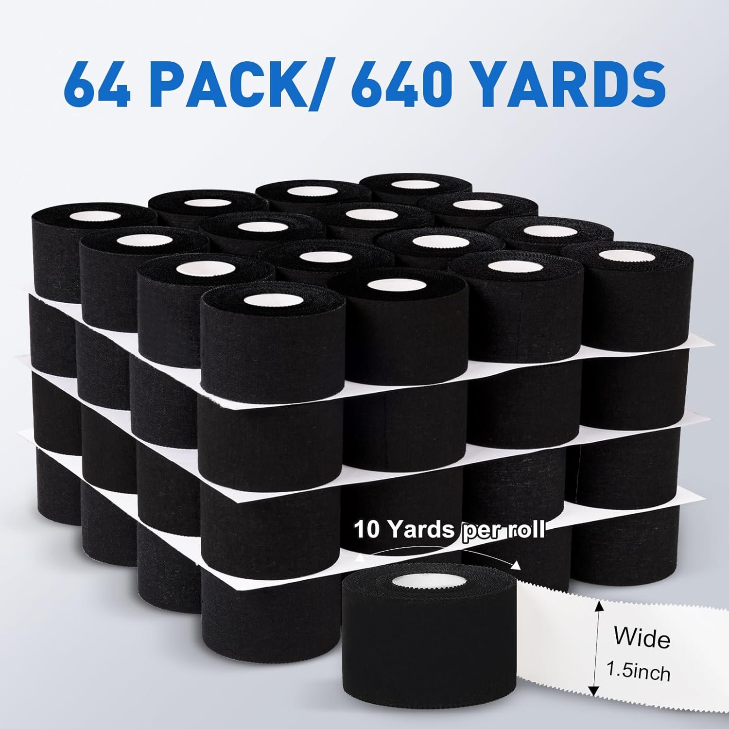 CHMI Athletic Tape,Black Sports Tape (64 Pack), 640 Yards Rolls Very Strong Easy Tear NO Sticky Residue Best Tape for Gymnastics Climbing Bat Injuries Medical (1.5 Inch X 640 Yards).