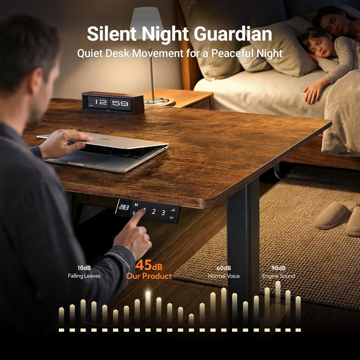 Electric Height Adjustable: The stand up desk features three preset buttons to customize your desired heights from 28.3″ to 46.5″.