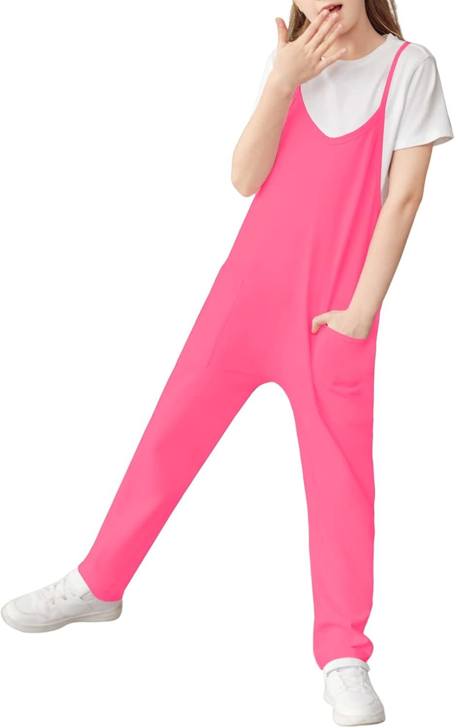 Cnkwei Girls’ Casual Sleeveless Jumpsuits Spaghetti Strap Loose Romper Long Pants with Pockets