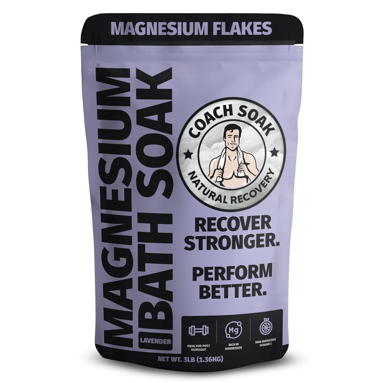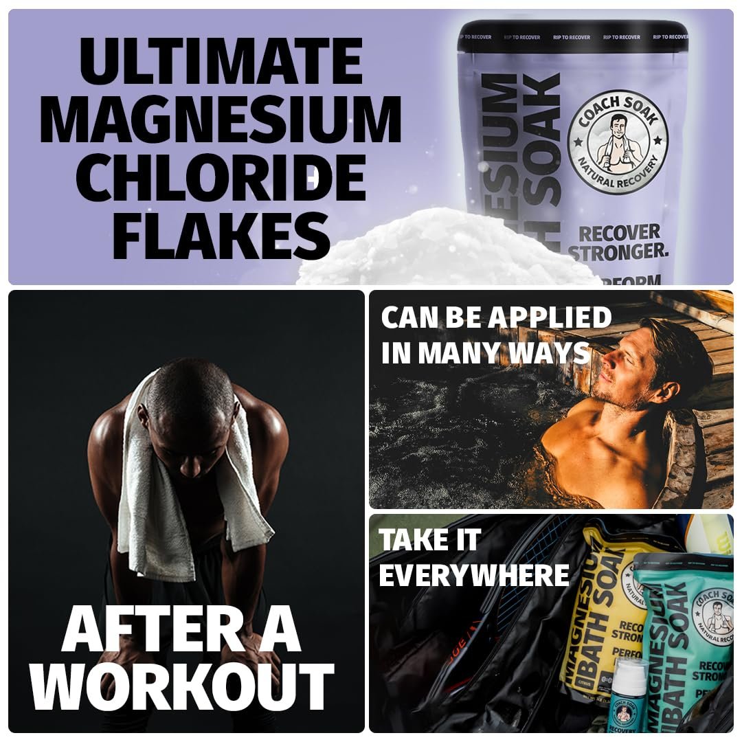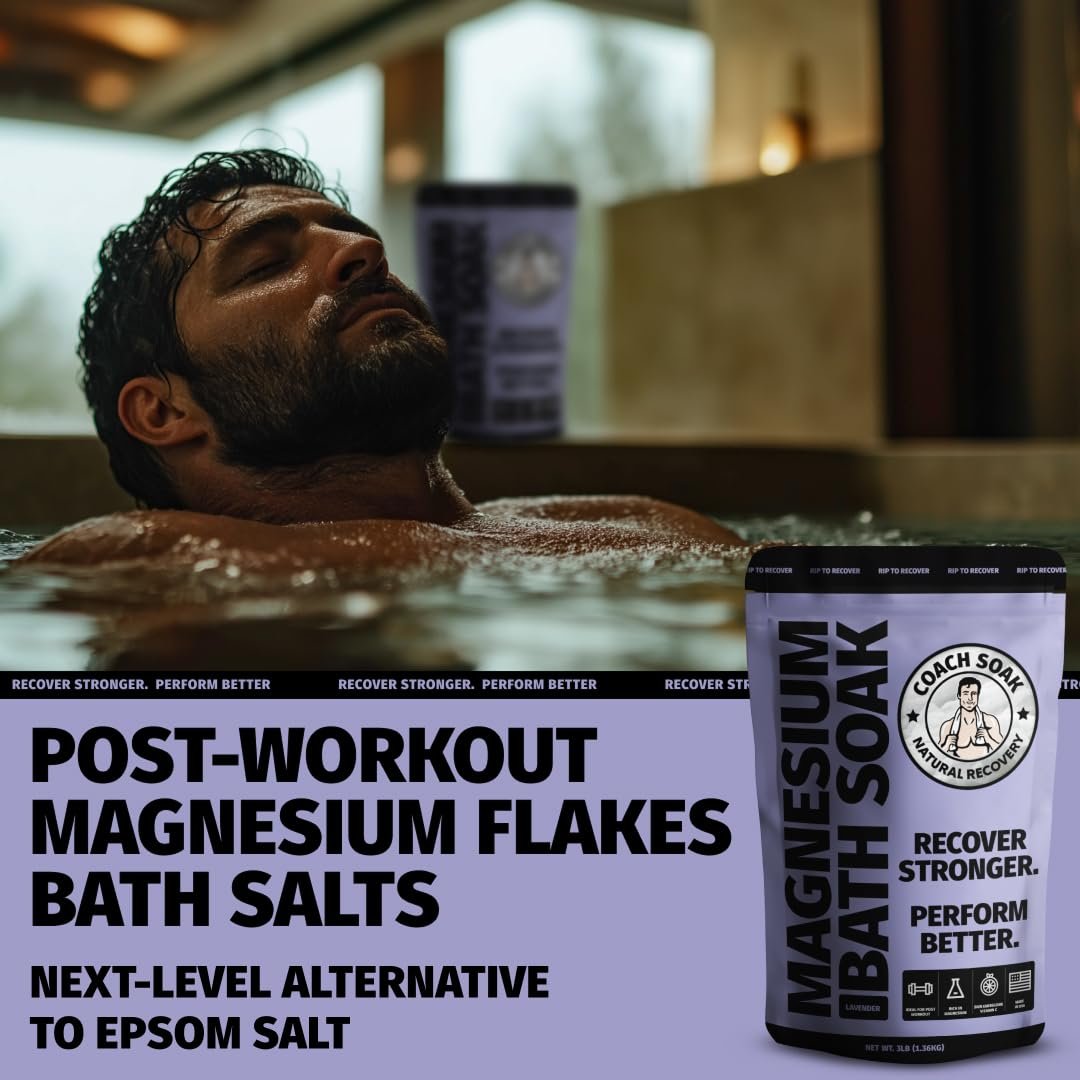 Coach Soak Recovery Bath Soak – Alternative to Epsom Salt Bath Soak – Fast-Absorbing Pure Magnesium Flakes & Dead Sea Salt with 21 Minerals, Bath Salts & Essential Oils – 3 lb, Calming Lavender