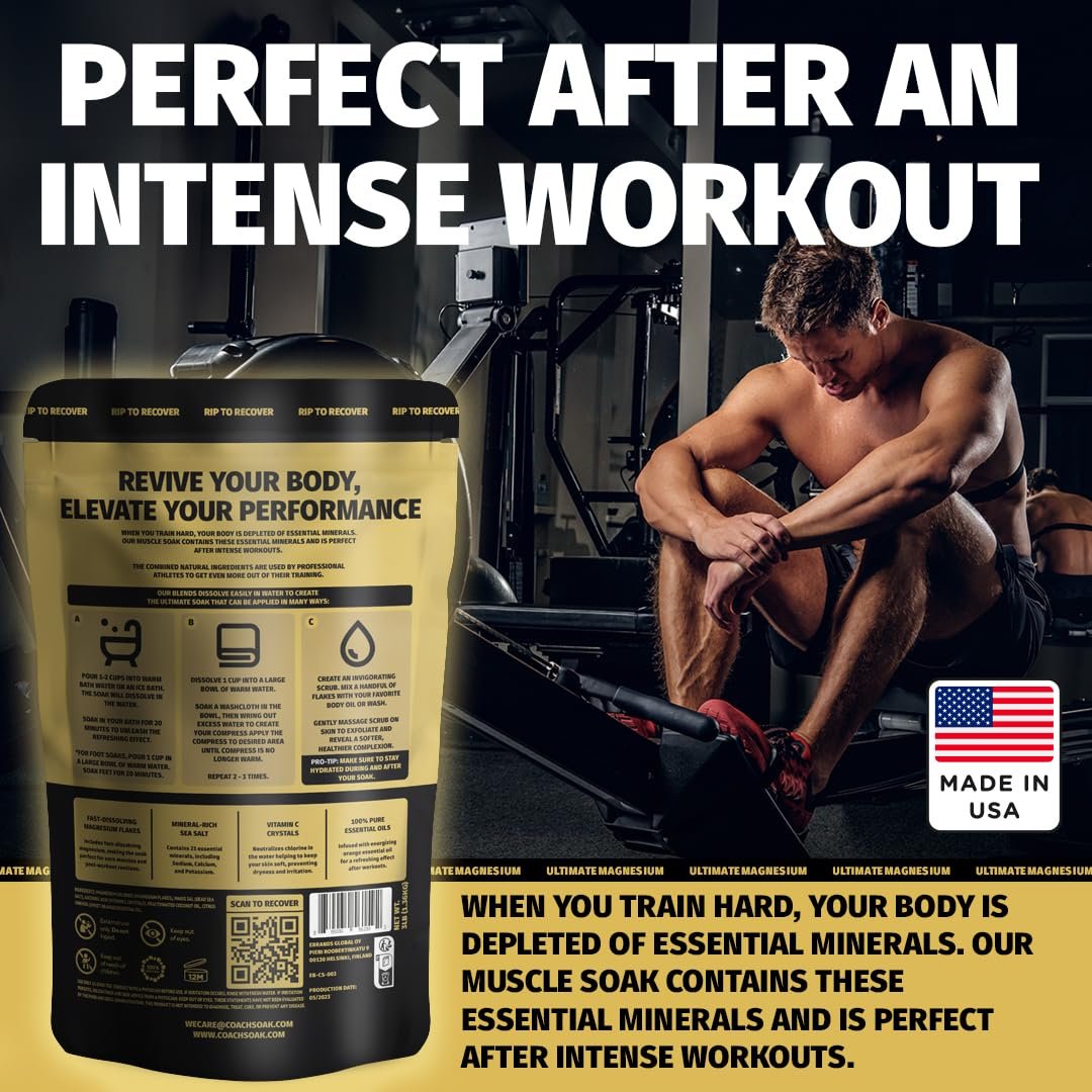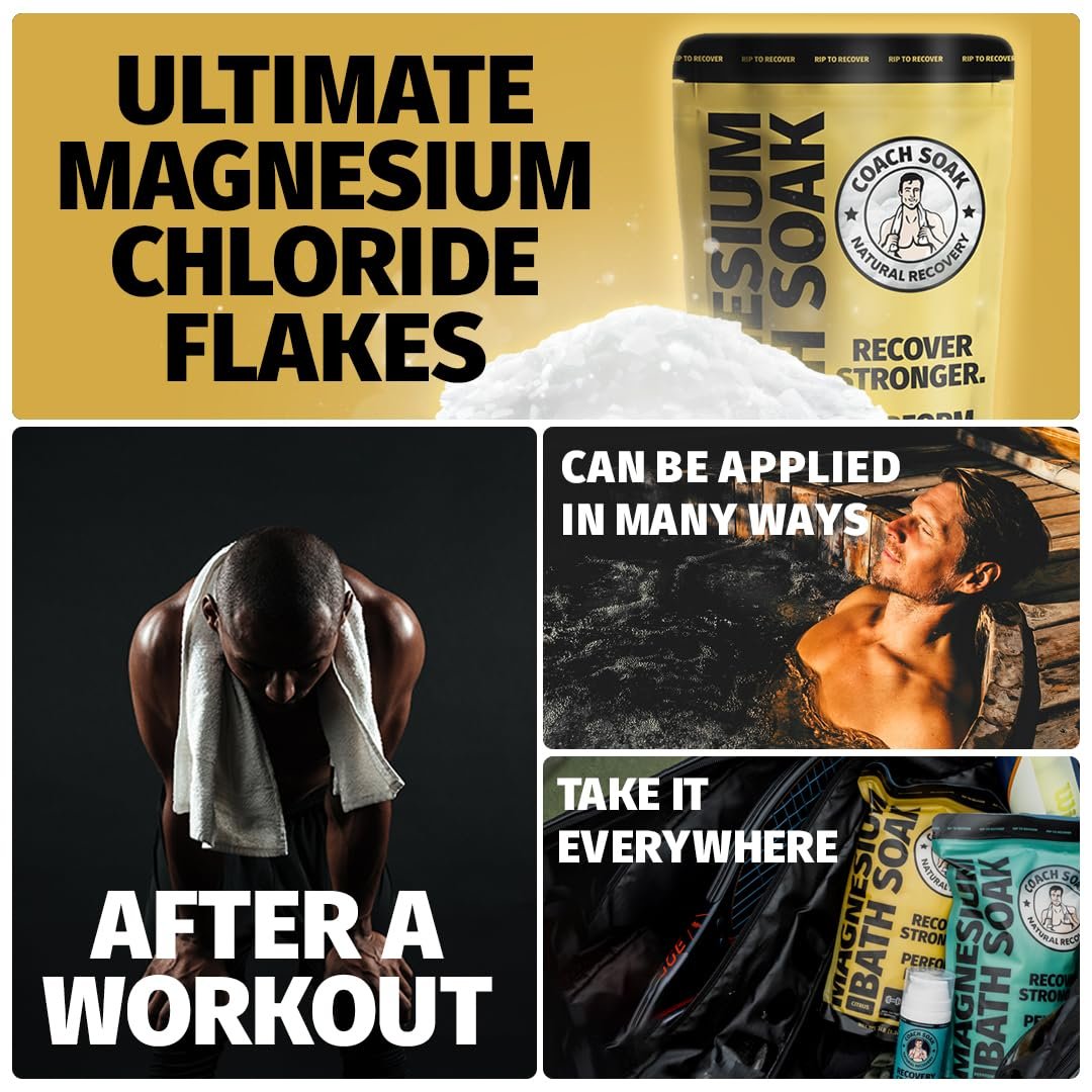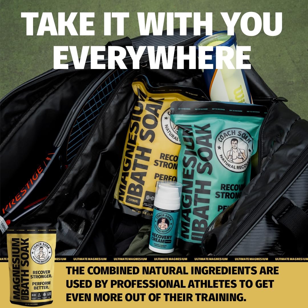 Coach Soak Recovery Bath Soak – Alternative to Epsom Salt Bath Soak – Fast-Absorbing Pure Magnesium Flakes & Dead Sea Salt with 21 Minerals, Bath Salts & Essential Oils – 3 lb, Energizing Citrus