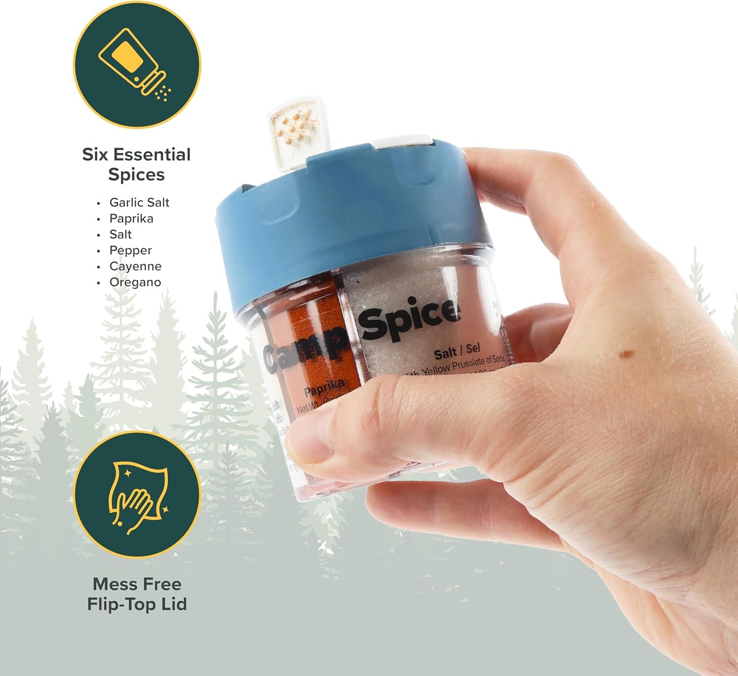 Coghlan’s Multi-Spice Shakers – Compact 6-in-1 Seasoning Containers for Camping, Travel, BBQ & Everyday Cooking – Lightweight, Portable, Mess-Free Design – Made in USA