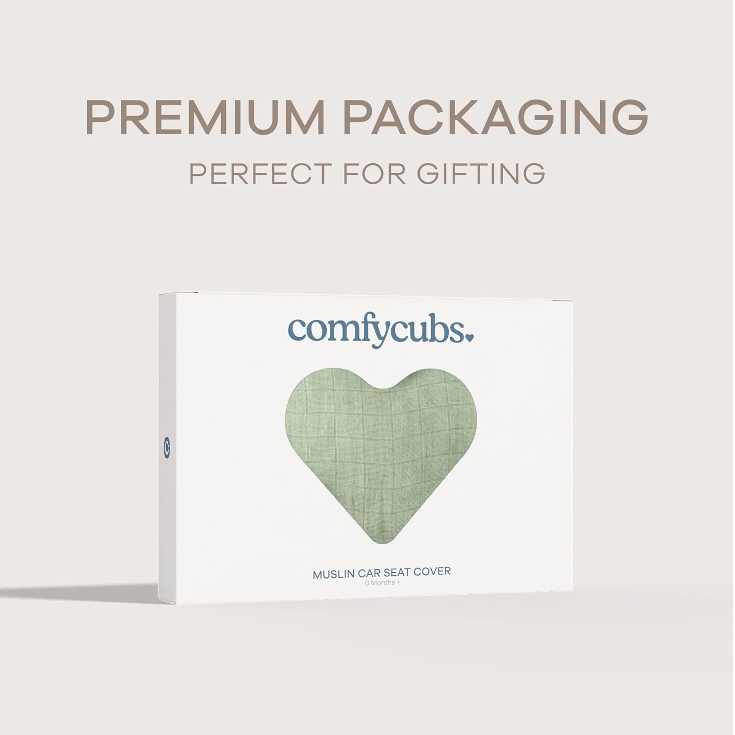 Comfy Cubs Baby Car Seat Cover – Soft, Breathable Bamboo Rayon and Muslin Cotton Blend – Lightweight Canopy for Sun, Bug, and Comfort Protection – Large Size Infant Seat Cover in Sage Design
