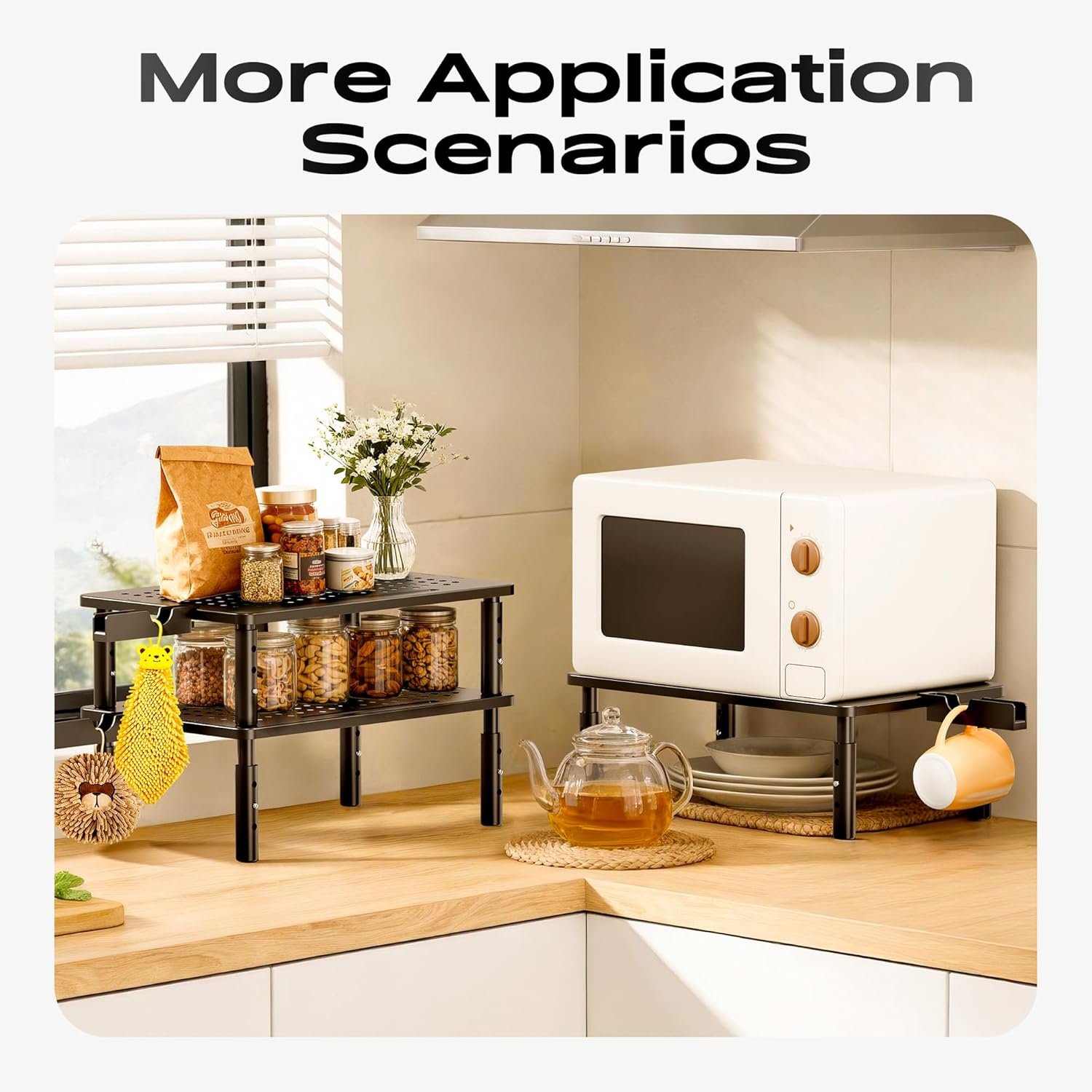 Multifunctional Use: The computer monitor stand riser can be used for desk, floor, carpet. You can use it as pc monitor screen desktop stand riser, or you can use it as a metal storage shelf holder riser like as plant stand or kitchen storage. If there is a need for storage, the adjustable monitor stand riser will be a good choice for you