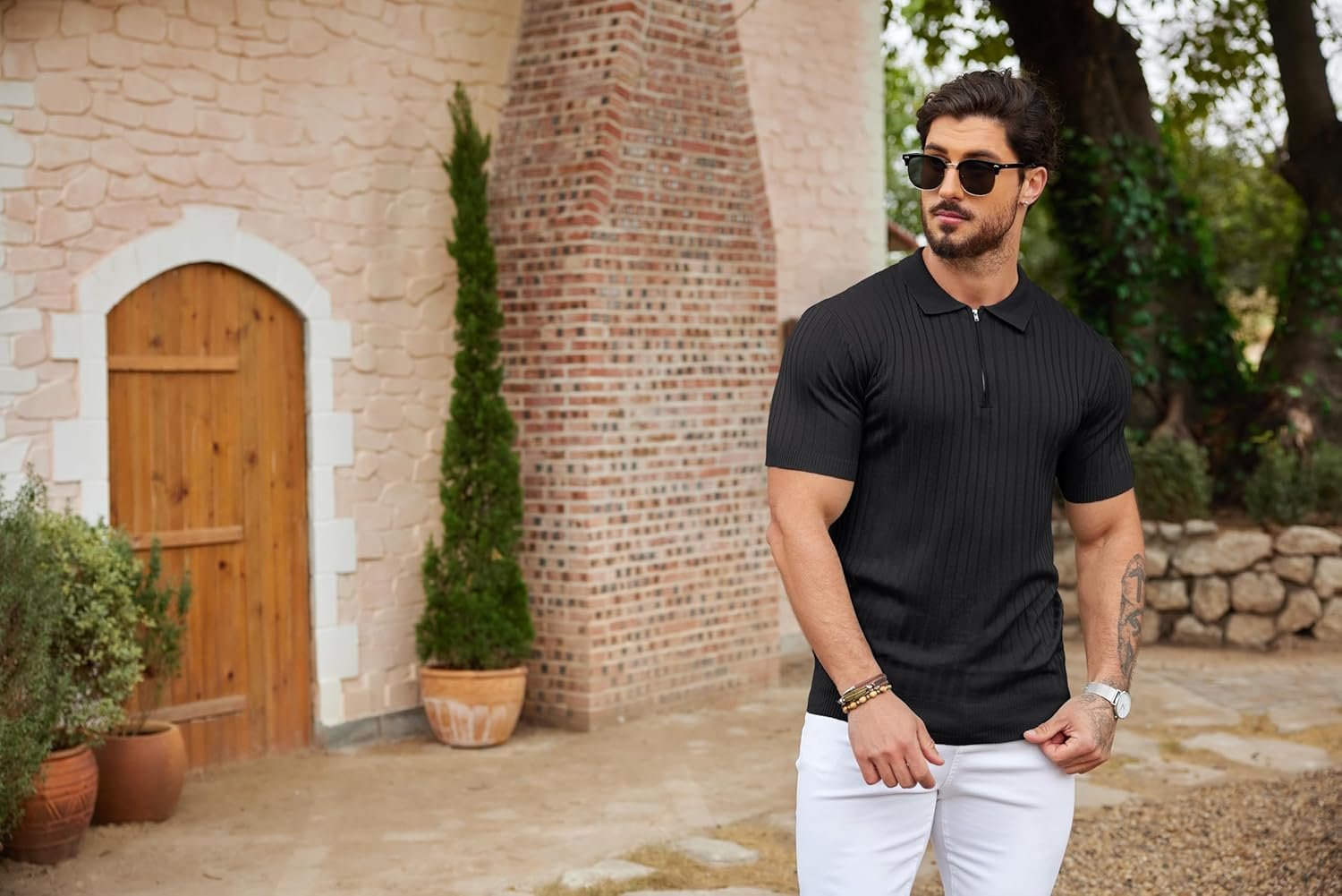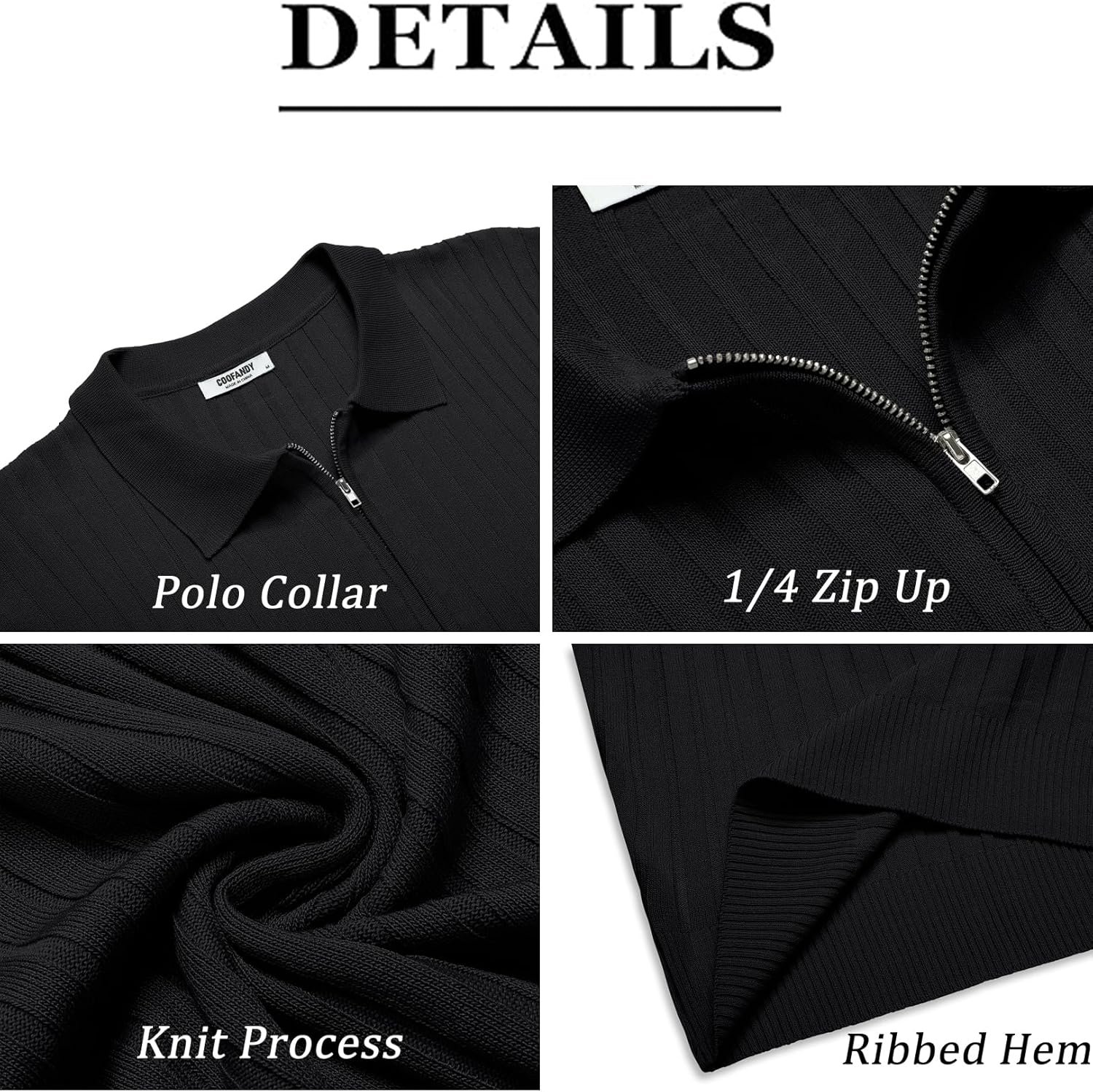 COOFANDY Men’s Zipper Polo Shirts Short Sleeve Ribbed Knit Polo T Shirts Fashion Casual Golf Shirts