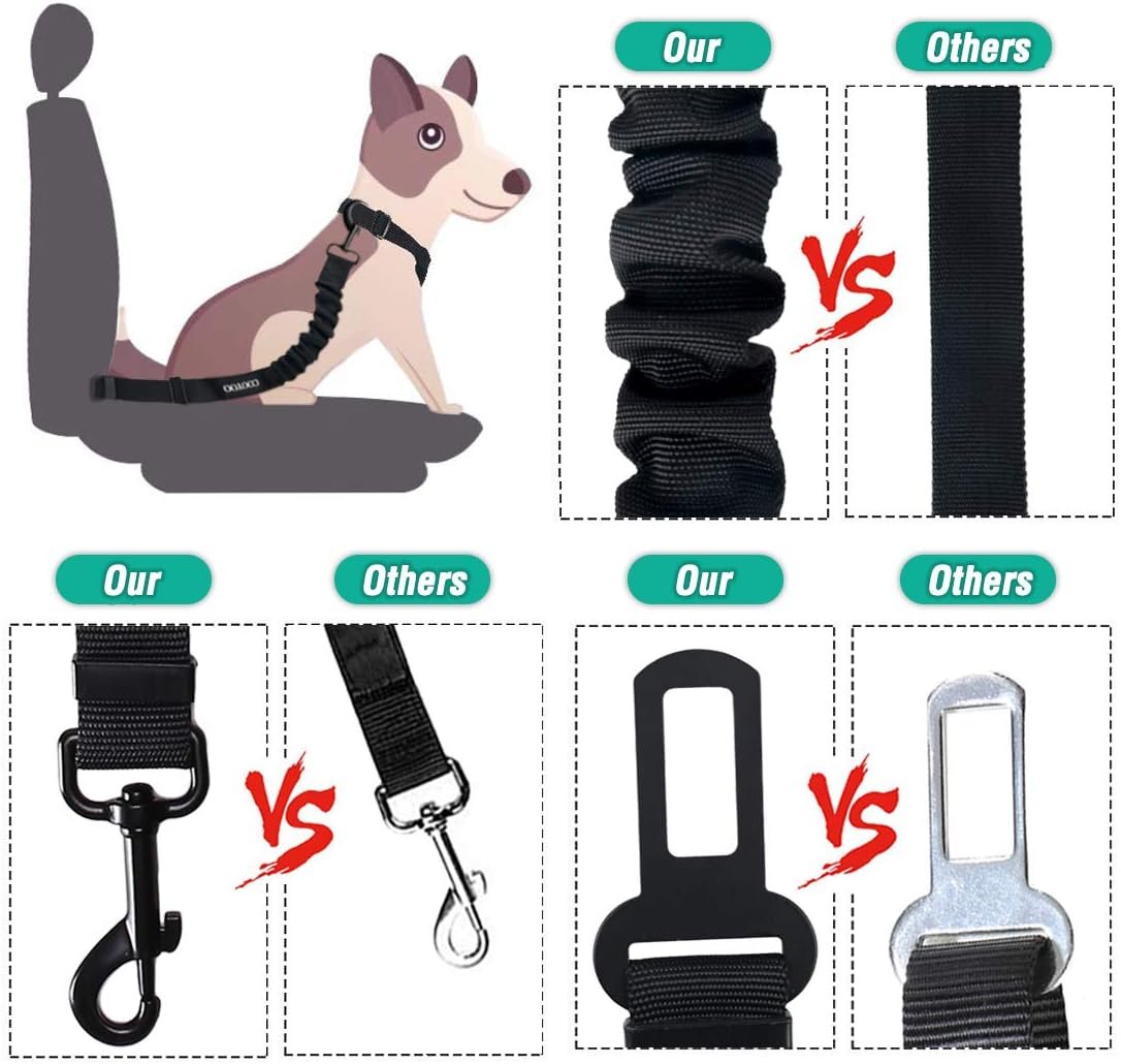 ELASTIC BUFFER DESIGN – Featuring a durable elastic bungee buffer, our seat belt absorbs sudden movements and jerks while driving, reducing the risk of choking. This design allows your pet to move freely within a set space, ensuring greater comfort during the ride.