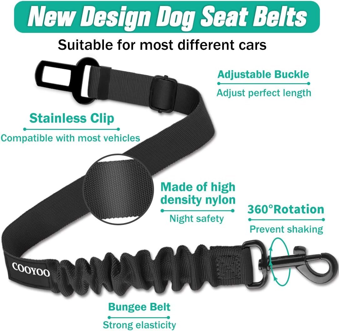 COOYOO Dog Seat Belt, Durability Retractable Dog Car Harness Adjustable Dog Seat Belt for Vehicle Nylon Pet Safety Seat Belts Heavy Duty & Elastic (1 Pack Black)