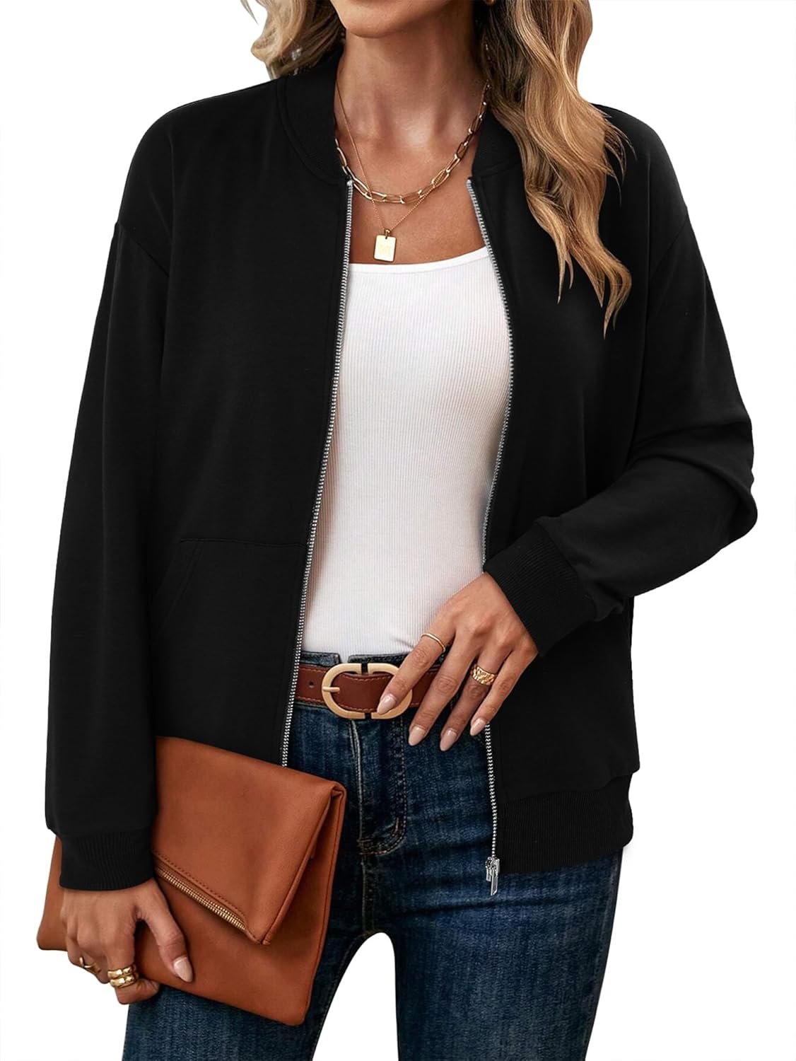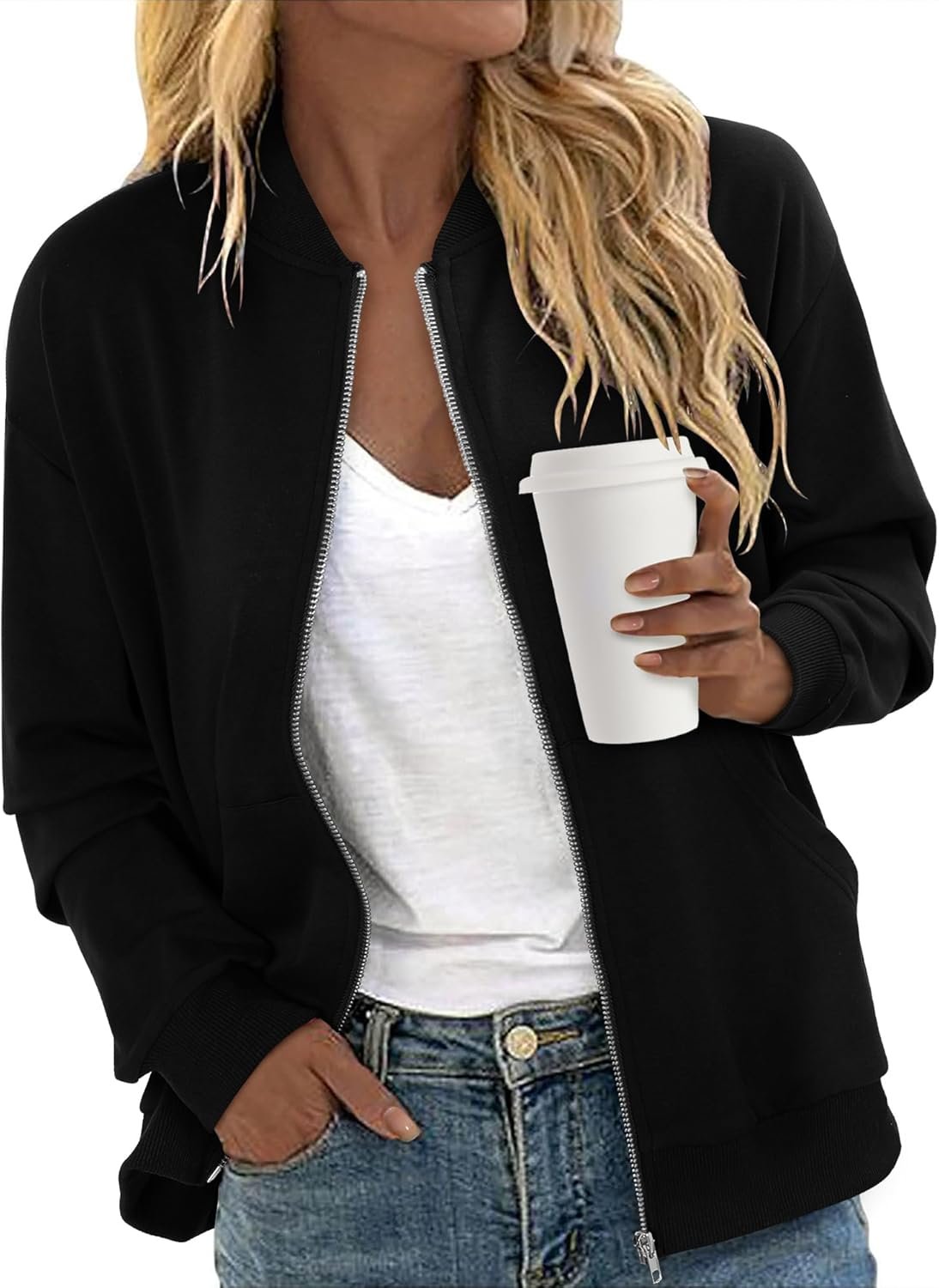 CRAZY GRID Women’s Zip Up Jacket Casual Long Sleeve Sweatshirts Fall Coat Outerwear Windbreaker with Pockets S-XXL