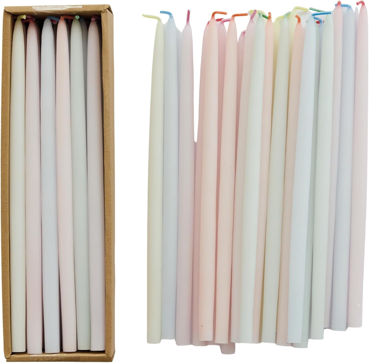 Creative Co-Op Set of 24 Unscented Thin Taper Candles with Multi-Color Wicks, Boxed